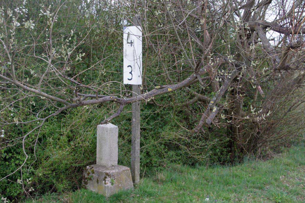 km 0,0 der Strecke Eilsleben (b Magdeburg) 0,0 - Marienborn 8,78 - Grenze DDR/BRD 14,849 - Helmstedt 17,72 | ||