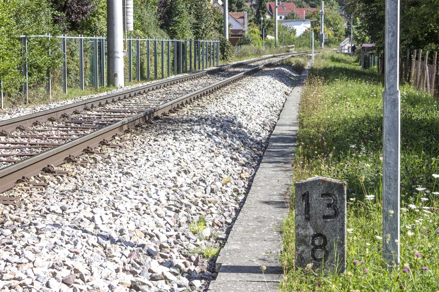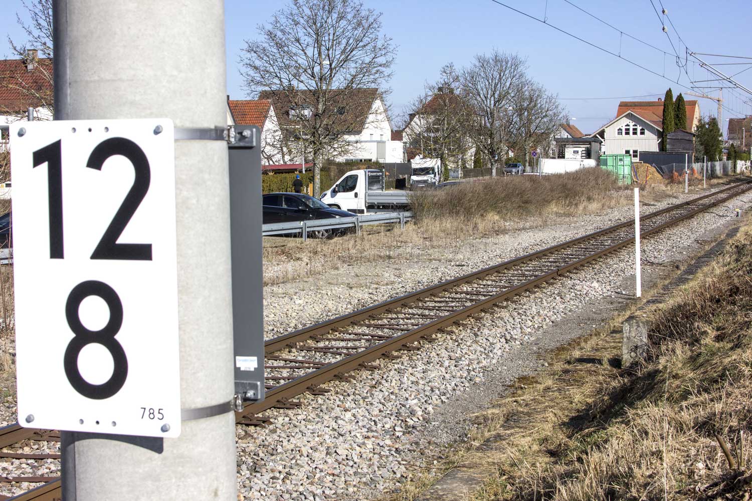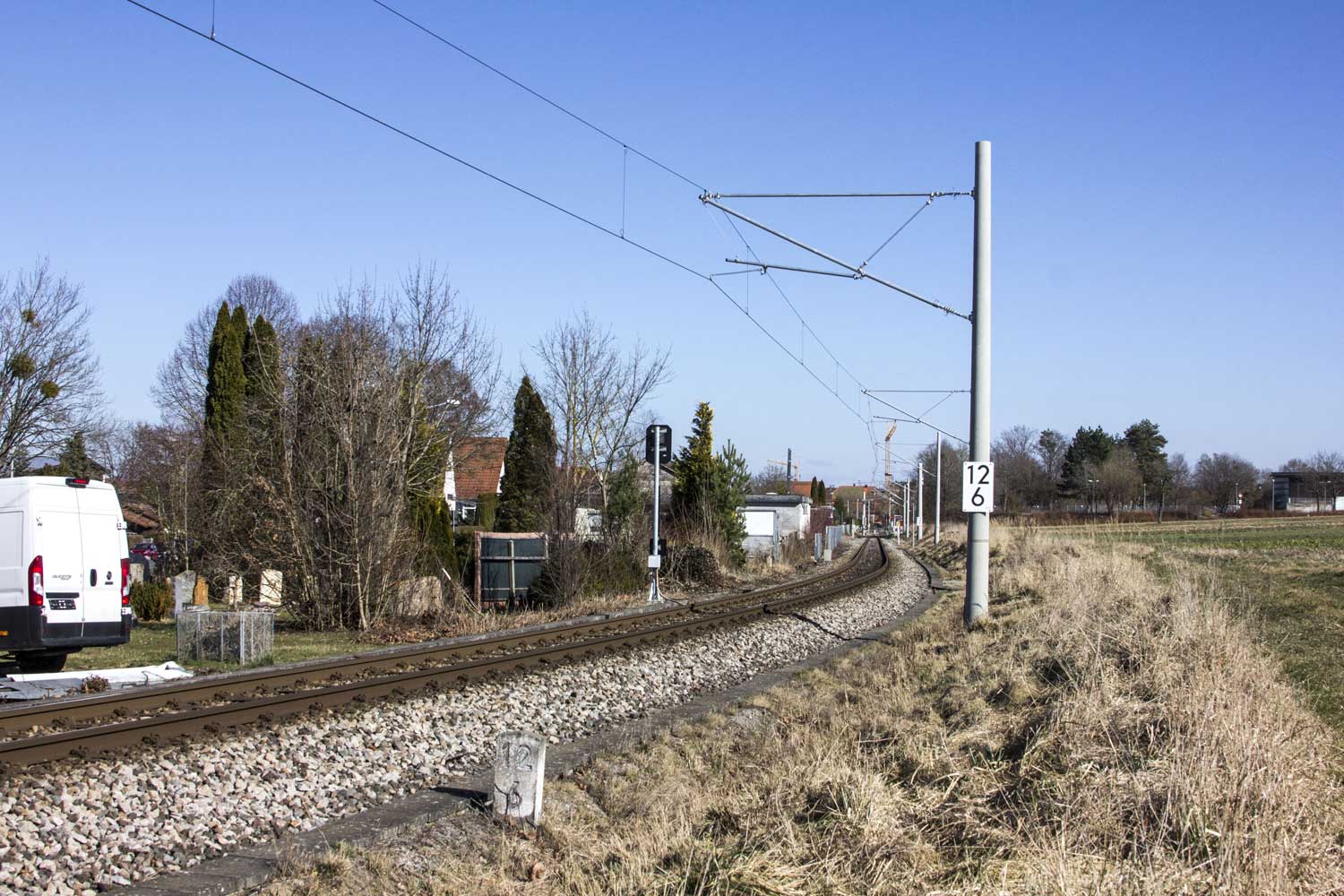 km 9,0 (links am Oberleitungsmast vesteckt) in Holzgerlingen Bf