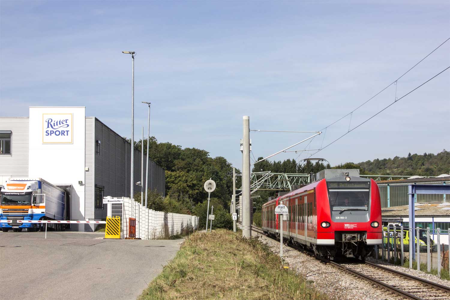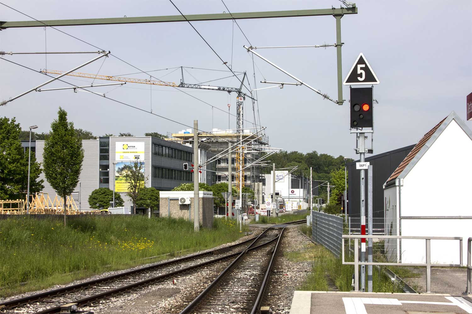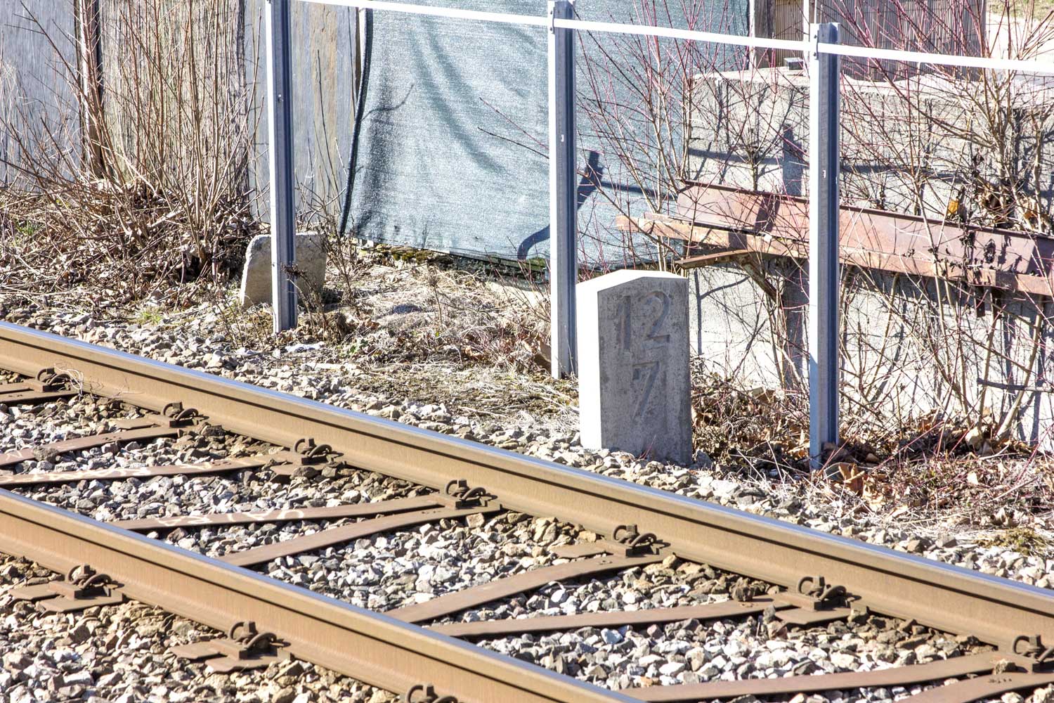 km 9,0 (links am Oberleitungsmast vesteckt) in Holzgerlingen Bf