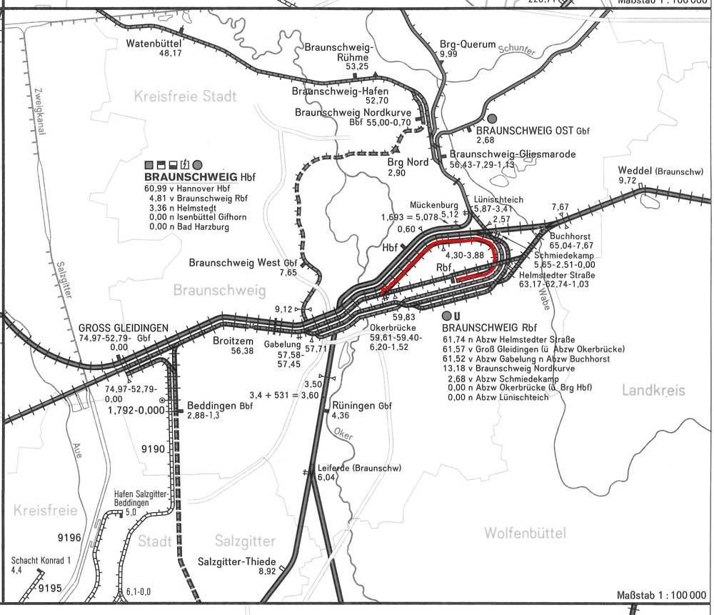 Braunschweig Rbf 0,0 - Braunschweig Hbf 4,81 - Abzw Okerbrücke 6,20