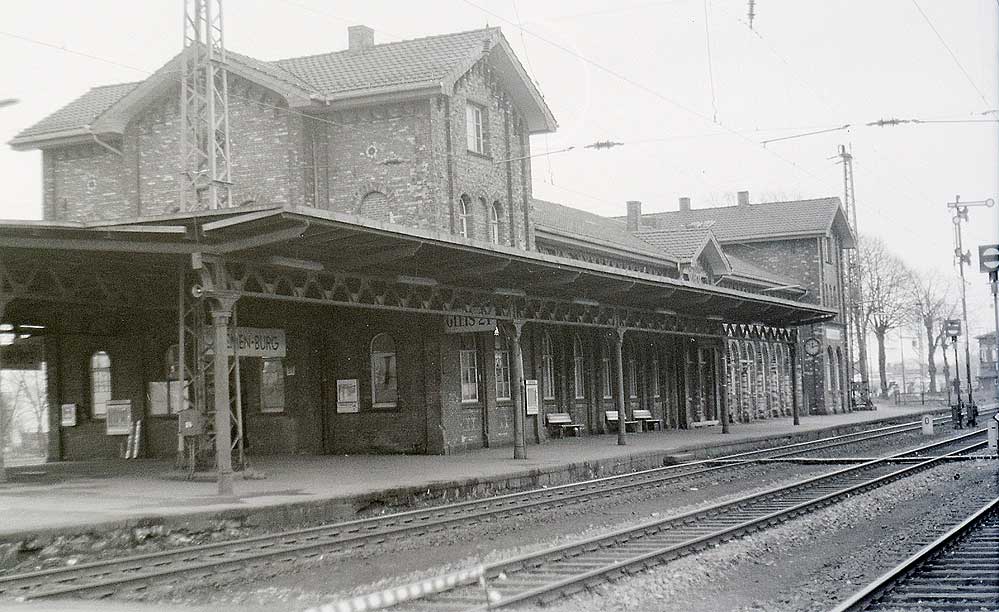 Bremen-Burg | 0,0 | km 133,58 der Strecke Hannover Hbf 0,0 - Wunstorf 21,40 - Bremen Hbf 122,28 - Wesermünde-Wulsdorf (heute: Bremerhaven-Wulsdorf) 180,88 - Wesermünde-Bremerhaven (heute: Bremerhaven Hbf) 184,24 - Wesermünde (Lehe) (heute: Bremerhaven-Lehe) 187,75 - Speckenbüttel (heute: Bremerhaven-SpeckenbütteI) 190,39 - Cuxhaven Stadt 228,35 |