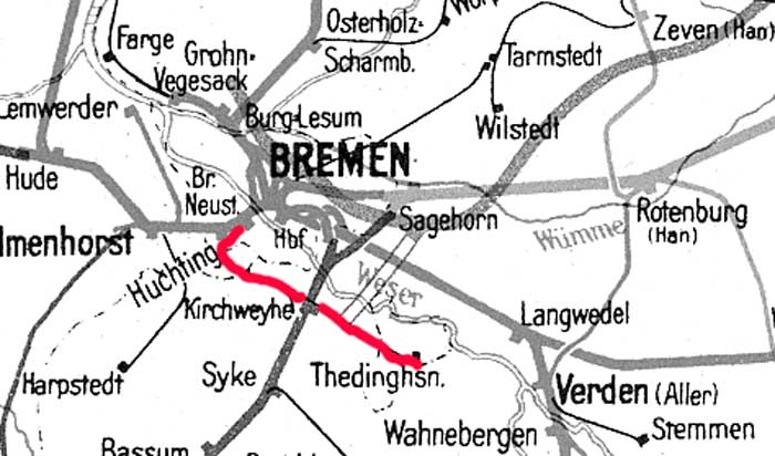 Huchting 0,0 - Leeste 11,7 - Thedinghausen 26,1 [Bremen-Thedinghauser Eisenbahn (BTE)]