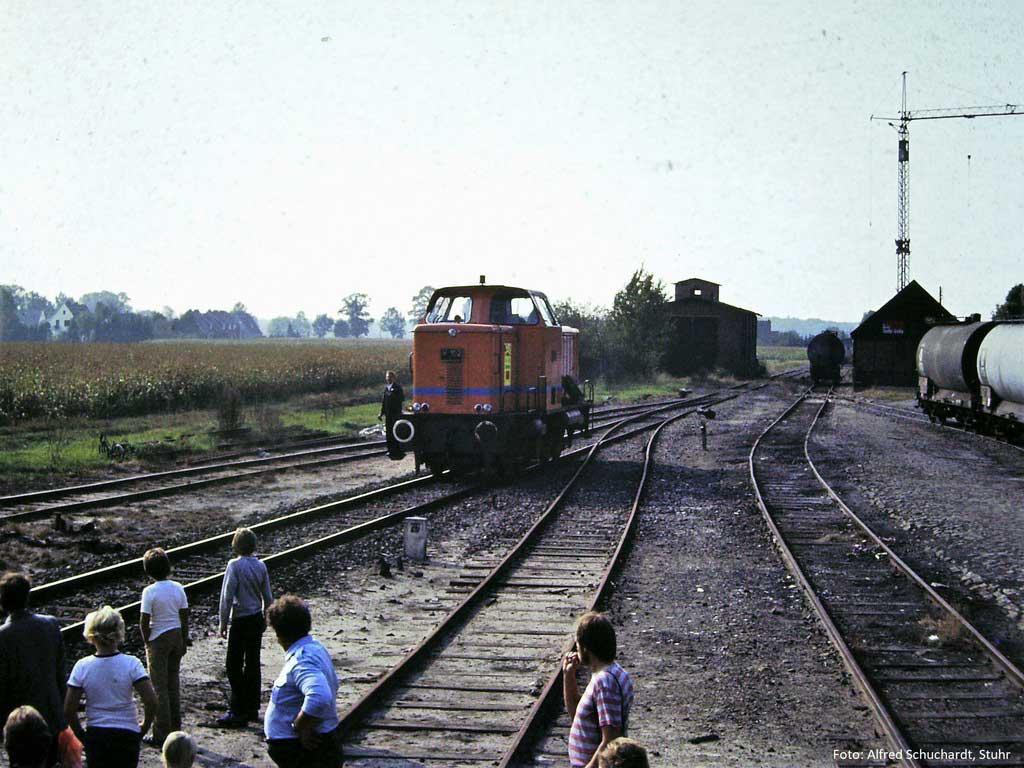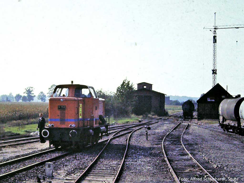 km 26,0 in Thedinghausen - V102 BThE (MaK 1000D) Foto: Alfred Schuchardt, 19.09.1982