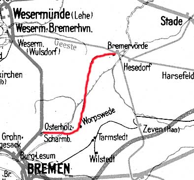 Osterholz-Scharmbeck Ost 47,5 km 143,44 der Strecke Hannover Hbf - Wunstorf - Bremen Hbf - Wesermünde-Wulsdorf (heute: Bremerhaven-Wulsdorf) - Speckenbüttel (heute: Bremerhaven-SpeckenbütteI) - Cuxhaven Stadt
