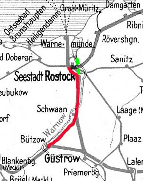 (Bützow 0,0) - Abzw Dalwitzhof 28,35 - Rostock Gbf 30,25 - Rostock Hafen 30,7