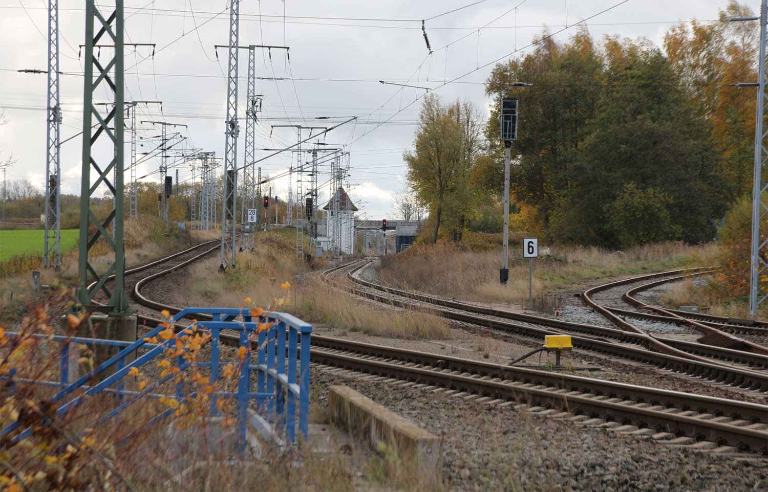 km 72,64 der Strecke Stralsund 0,30 - Velgast 18,88 - Abzw. Warnowbrücke 70,15 - Rostock Hbf 72,64 mit Zweigstrecken