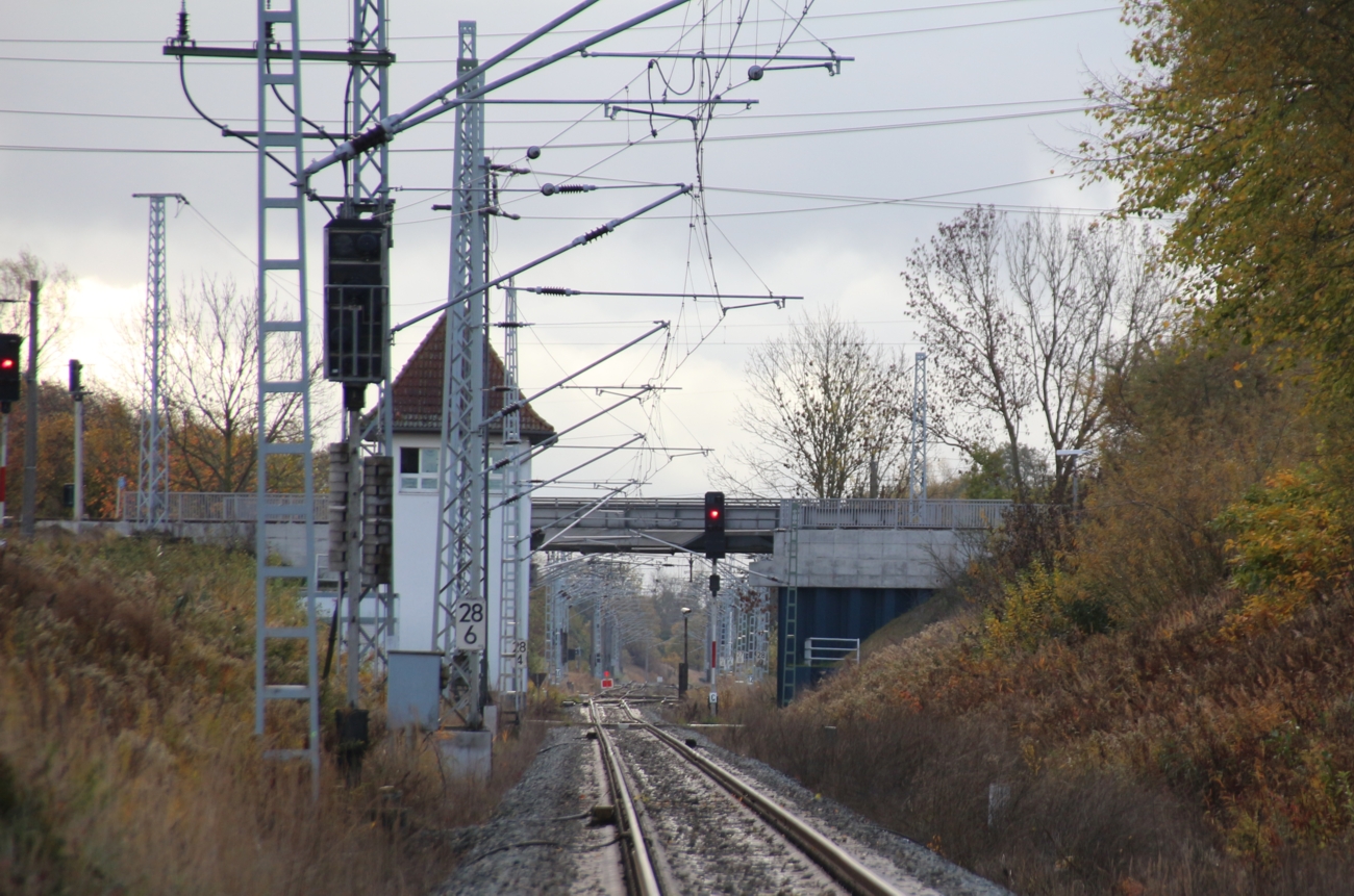 etwa km 29,1 zwischen Dalwitzhof und Rostock Gbf/Rostock Hafen - Blick Richtung Rostock Gbf/Rostock Hafen