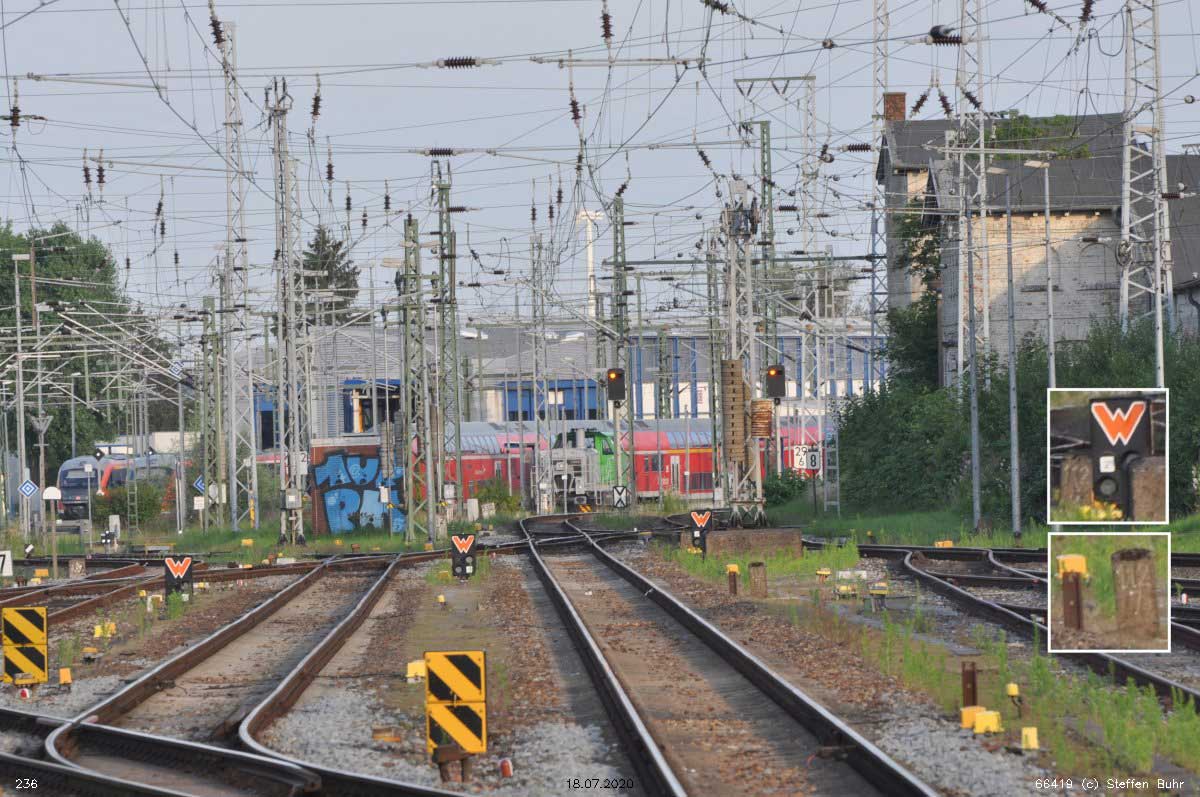 km 72,59 der Strecke Stralsund Hbf 0,0 - Velgast 18,88 - Bentwisch 64,69 - Abzw Riekdahl 68,63 - Abzw Rostock Warnowbrücke West 71,34 - Rostock Hbf 72,59 (6322)