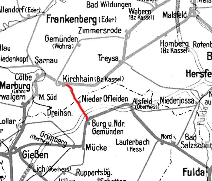 Burg- und Nieder-Gemünden 0,0 - Streckenunterbrechung - Nieder Ofleiden MHI 8,50 -Kirchhain (Bz Kassel) 20,07