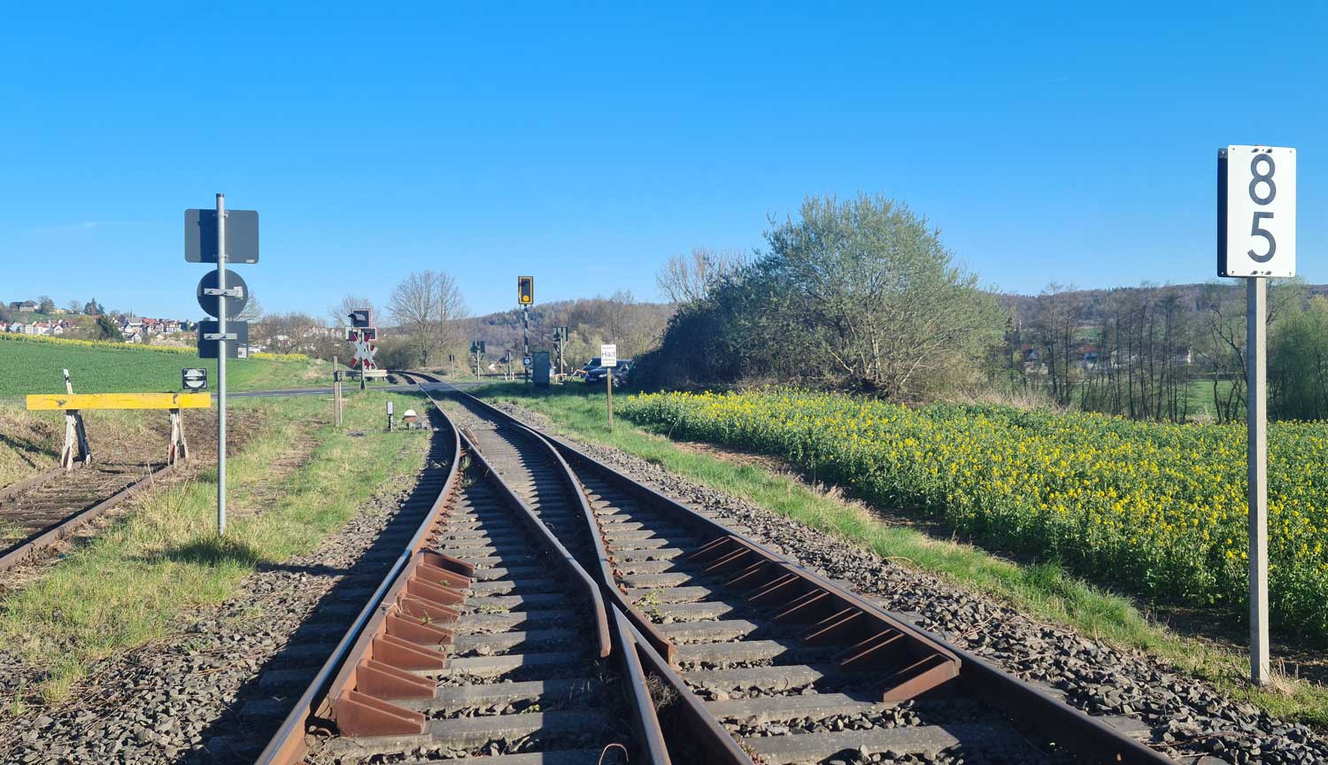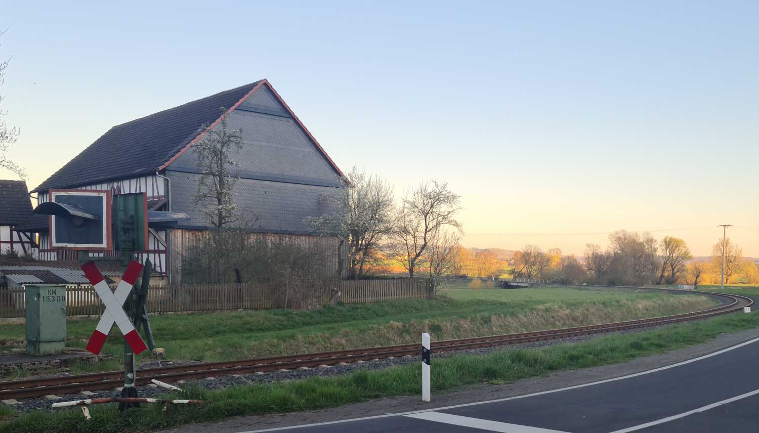 BÜ km 11,880 in Schweinsberg - Blick Richtung Kirchhain (Bz Kassel)