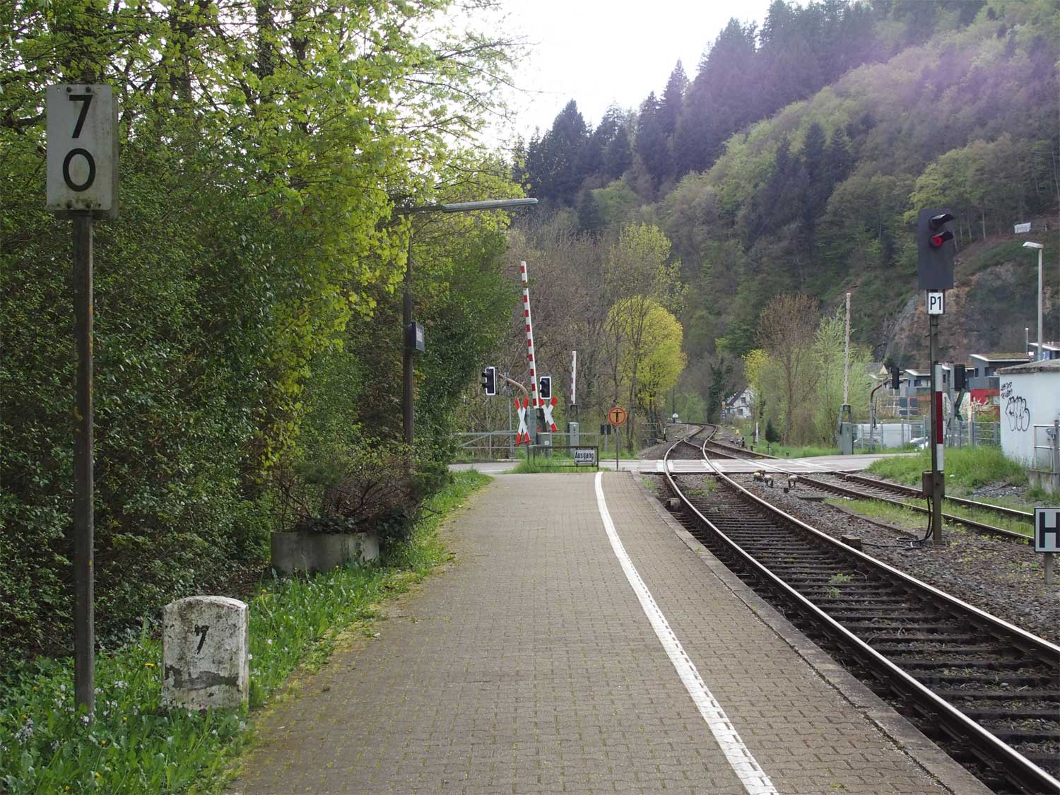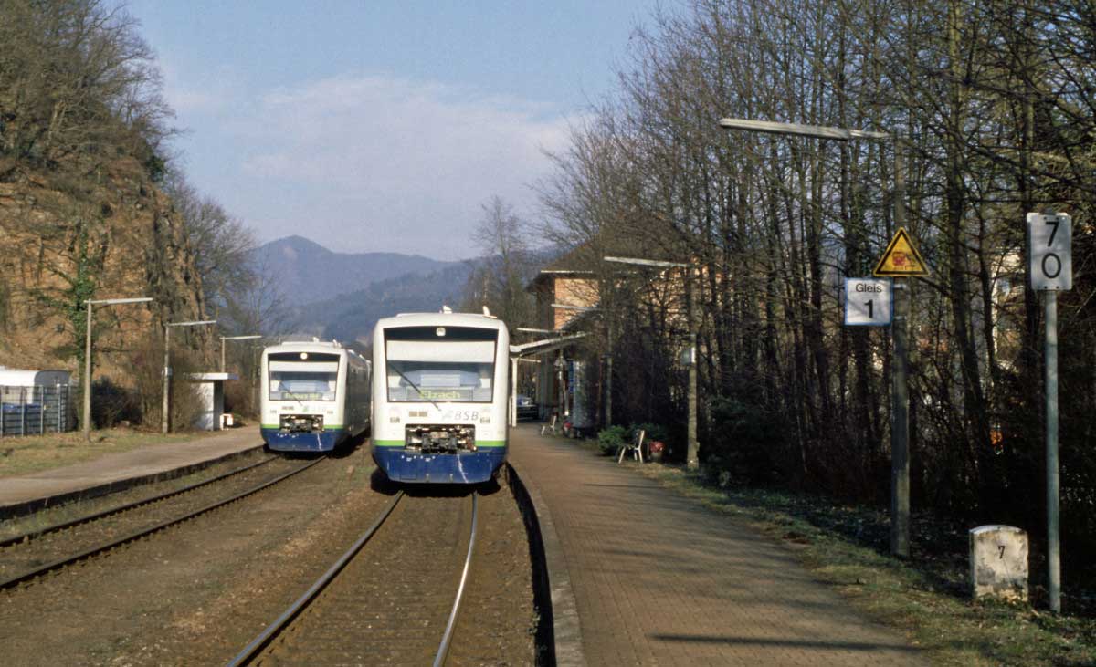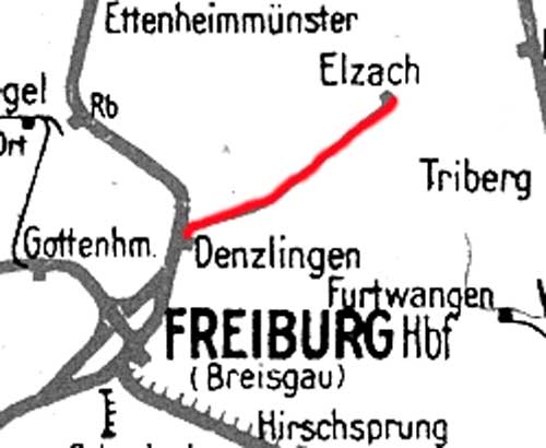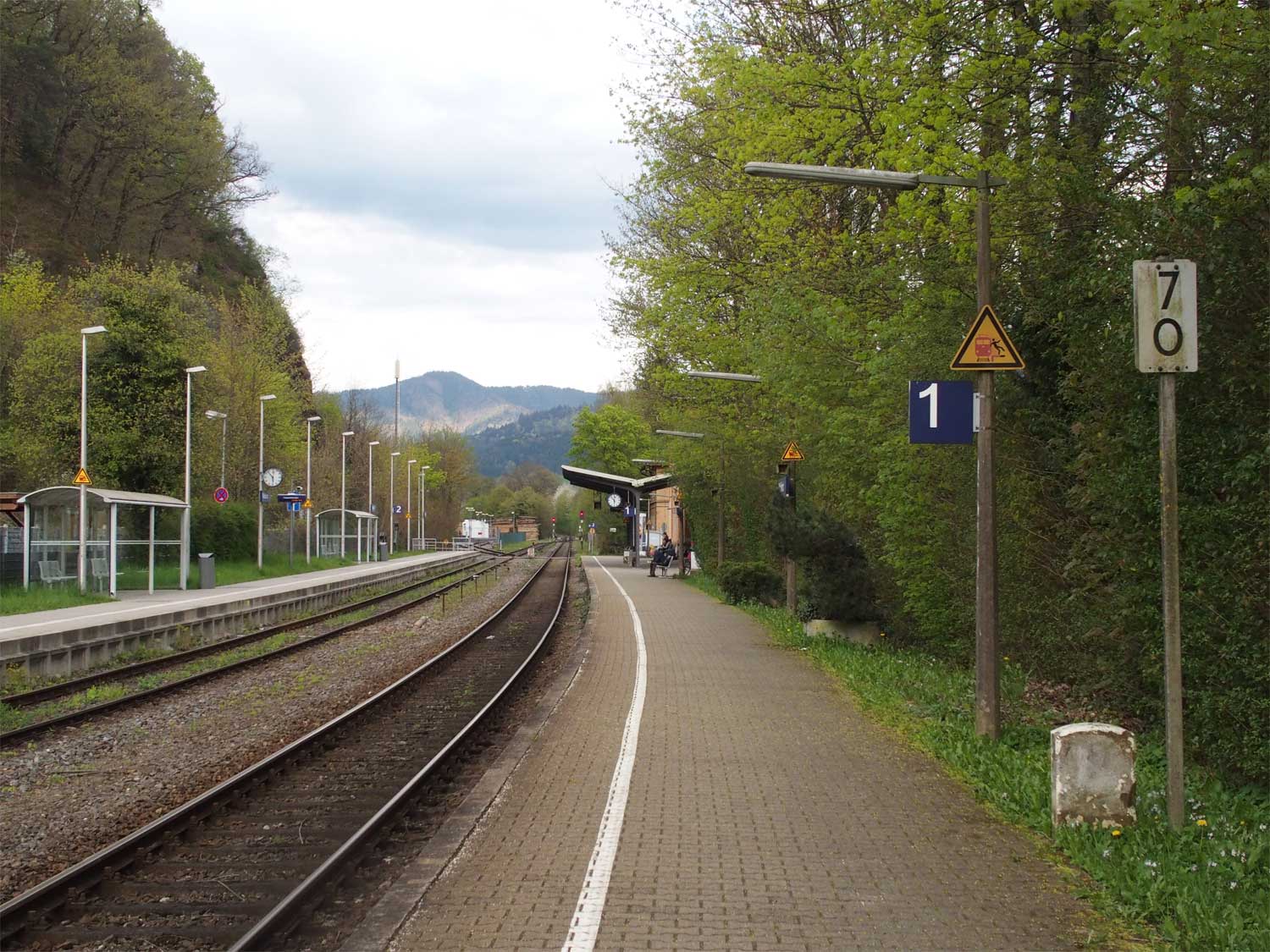 Gutach (Breisgau) | 10,24 | Am Bahnhof Gutach bestand Verbindung zu einer elektrifizierten Schmalspurbahn mit 750 Millimeter Spurweite zur Nähseidenfabrik Gütermann. |