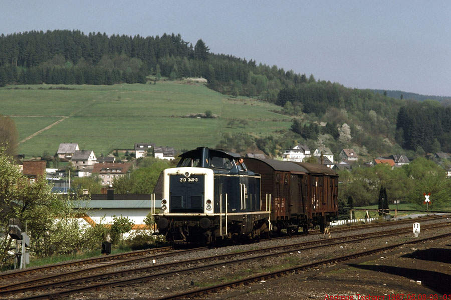 213 340 mit 67968 am 08.05.1987 im Bf Eibelshausen am km 11,6