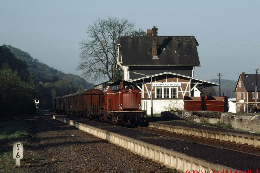 km 5,6 im Bf Frohnhausen (Dillkr) - 212023 mit 67967 am 05.05.1989