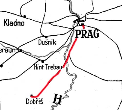 Dobříš (Doberschisch) 0,0 - Praha-Modřany (Moderschan) 39,597
