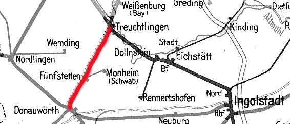 Donauwörth 0,00 km 52,94 der Strecke (Ingolstadt -0,74) - km 4,9 = km 2,2 - Donauwörth 52,94 - Neuoffingen 96,81 (5381)