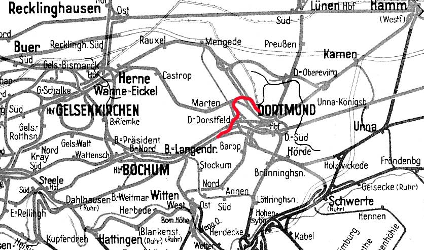 Dortmund-Lütgendortmund Gbf 0,0 - Dortmund-Dorstfeld Gbf 3,12 - Dortmund-Huckarde Süd 5,21 - Dortmund Vbf 7,94 (1951)