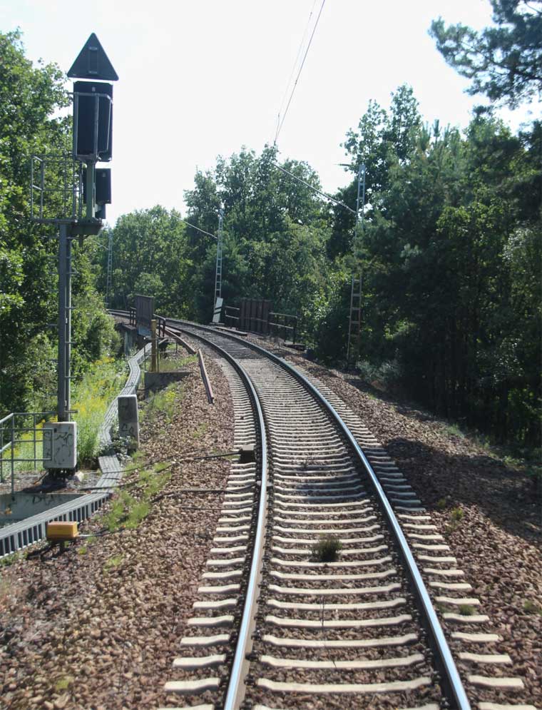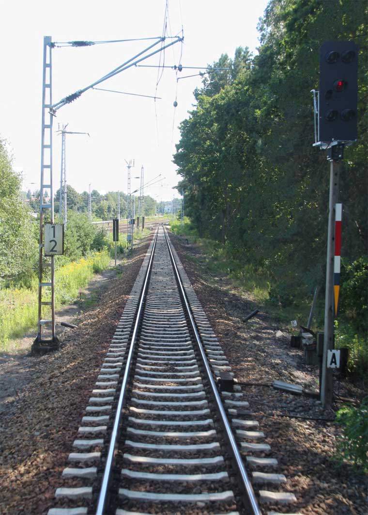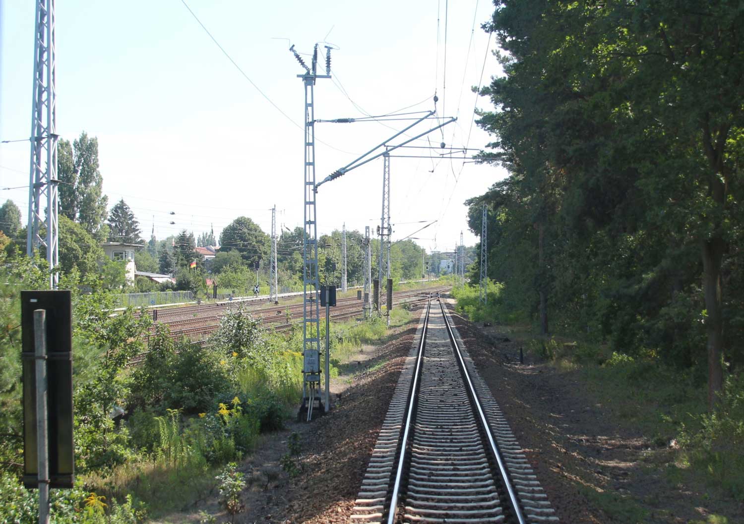 Abzw Berlin Stadtforst, W 1 | Strecke Berlin Eichgestell, W 14 km25,76 - Abzw Berlin Stadtforst, W 1 km 27,7 (6148) weiterlaufende Kilometrierung vom Berliner Außenring (BAR) | |
