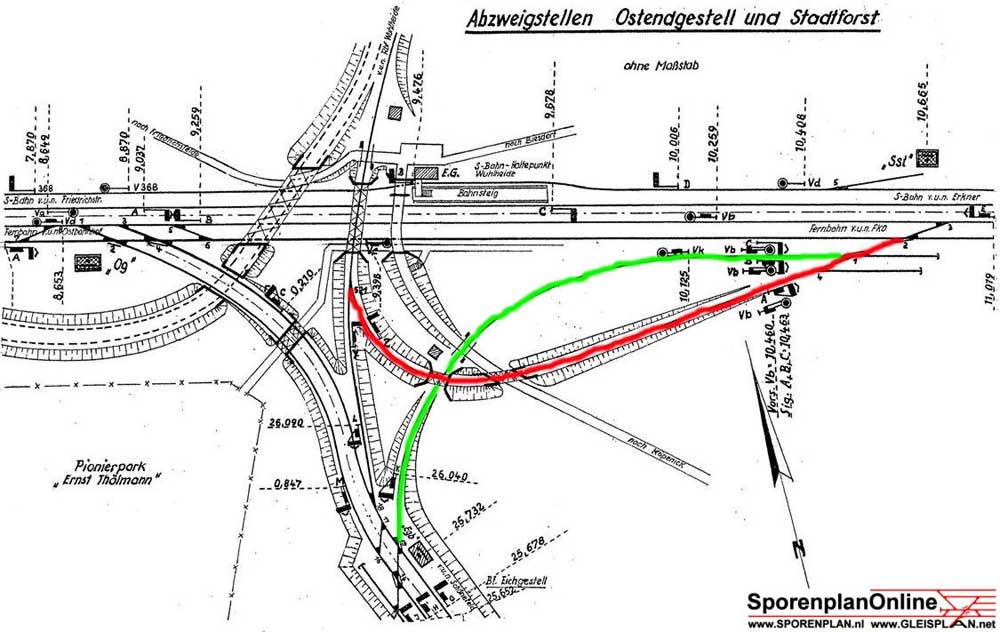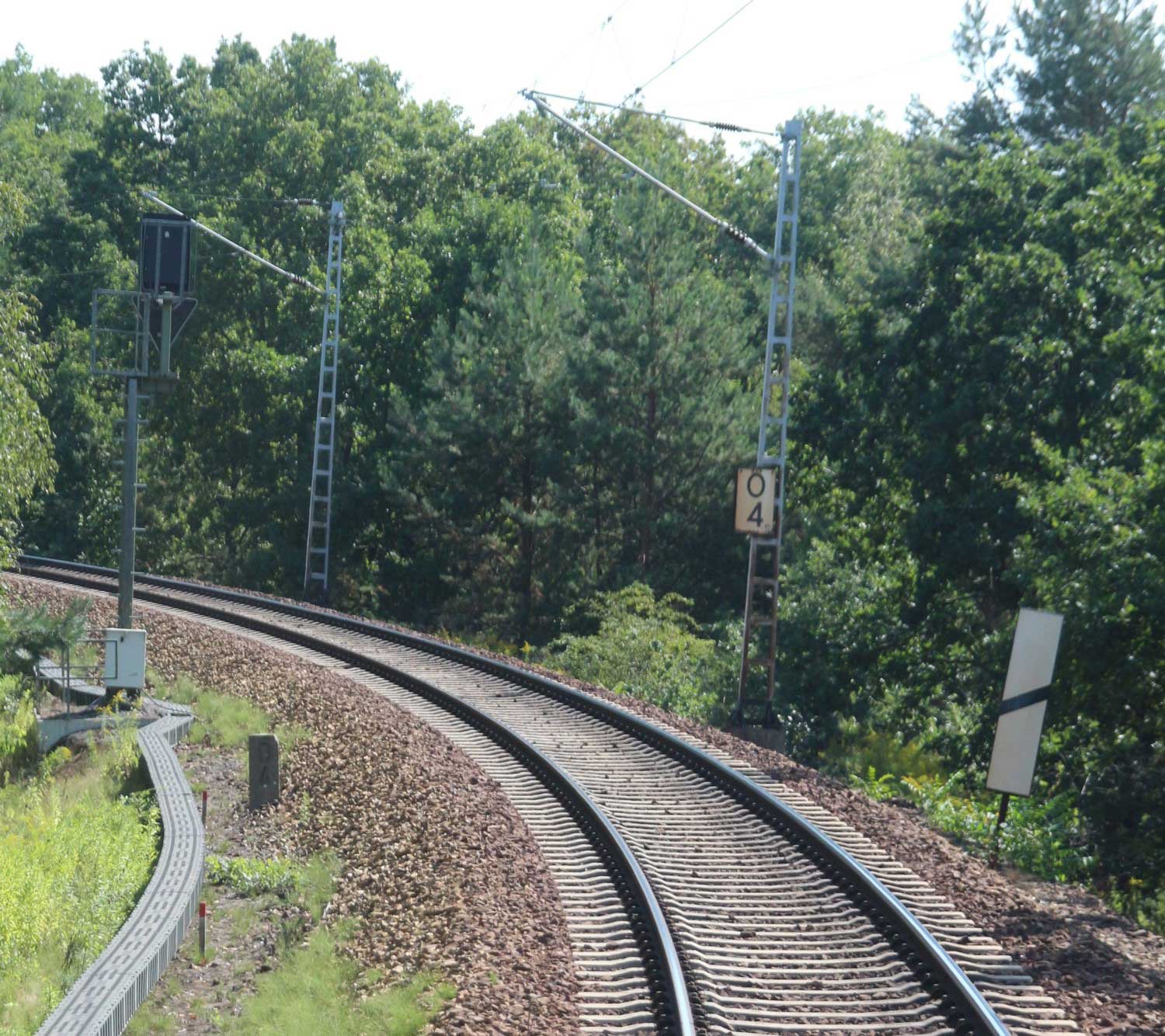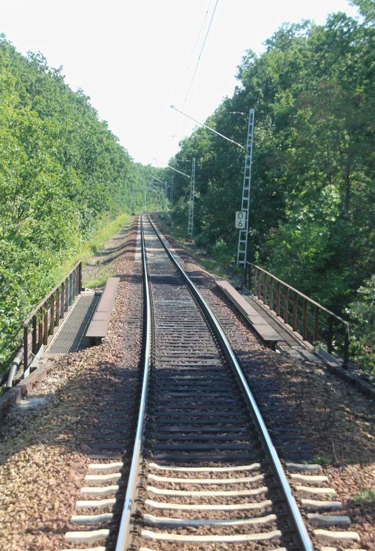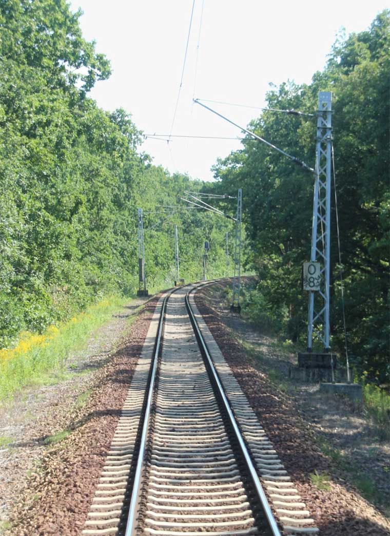 Abzw Berlin Stadtforst, W 1 | Strecke Berlin Eichgestell, W 14 km25,76 - Abzw Berlin Stadtforst, W 1 km 27,7 (6148) weiterlaufende Kilometrierung vom Berliner Außenring (BAR) | |