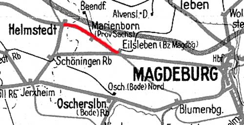 km 31,7 der Strecke Haldensleben (bis 1938: Neuhaldensleben) 0,0 - Eilsleben (Bez Magdeburg) 31,7