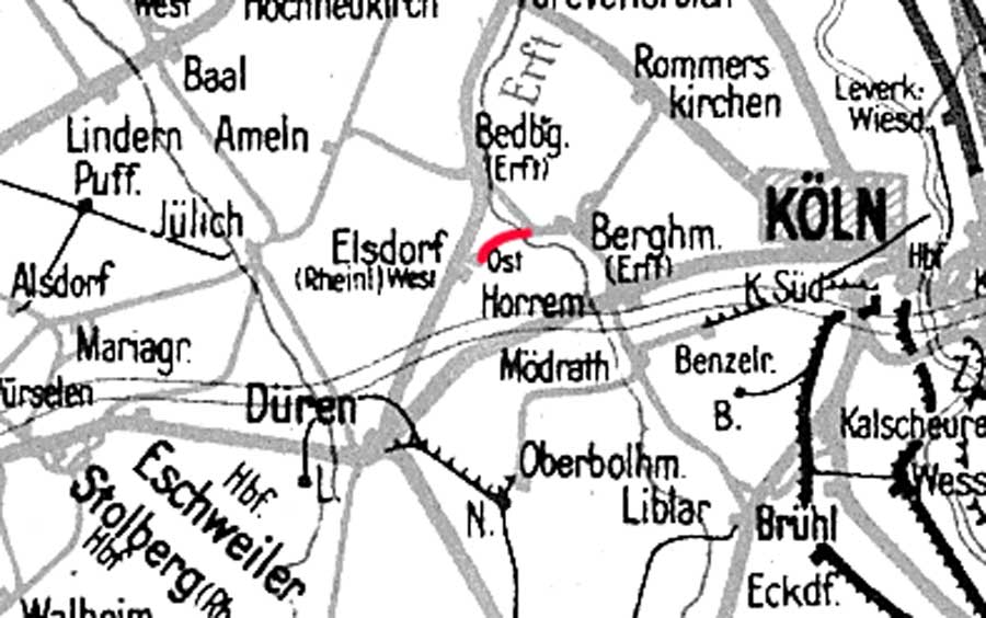 km 14,28 der Strecke Düren 0,0 - Grevenbroich