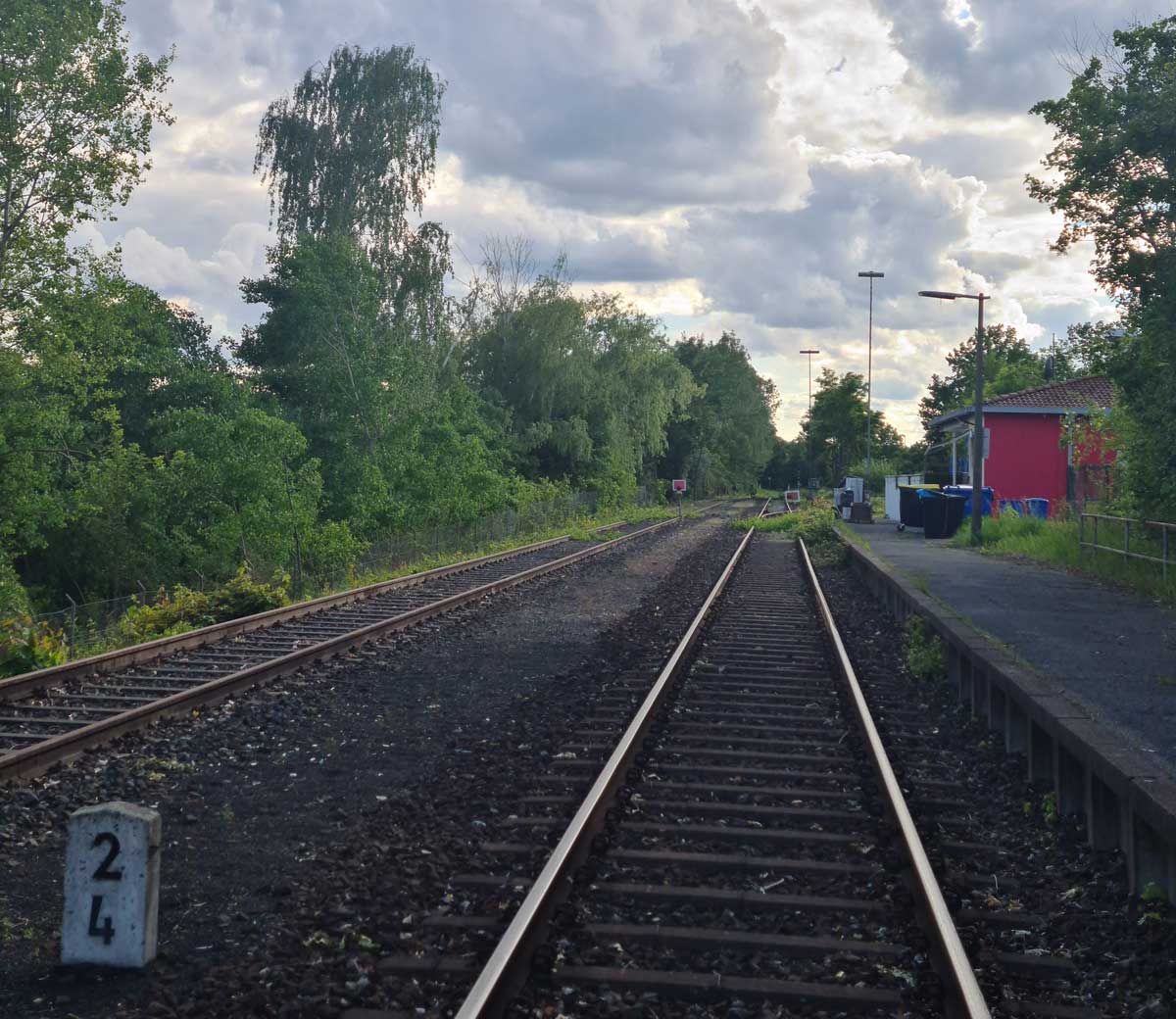 bei km 0,0 (ganz links) in Erlangen-Bruck Gleise von links nach rechts: