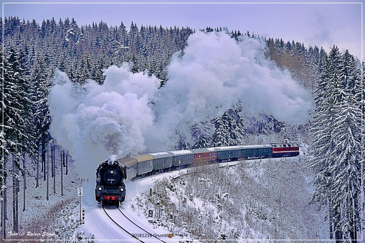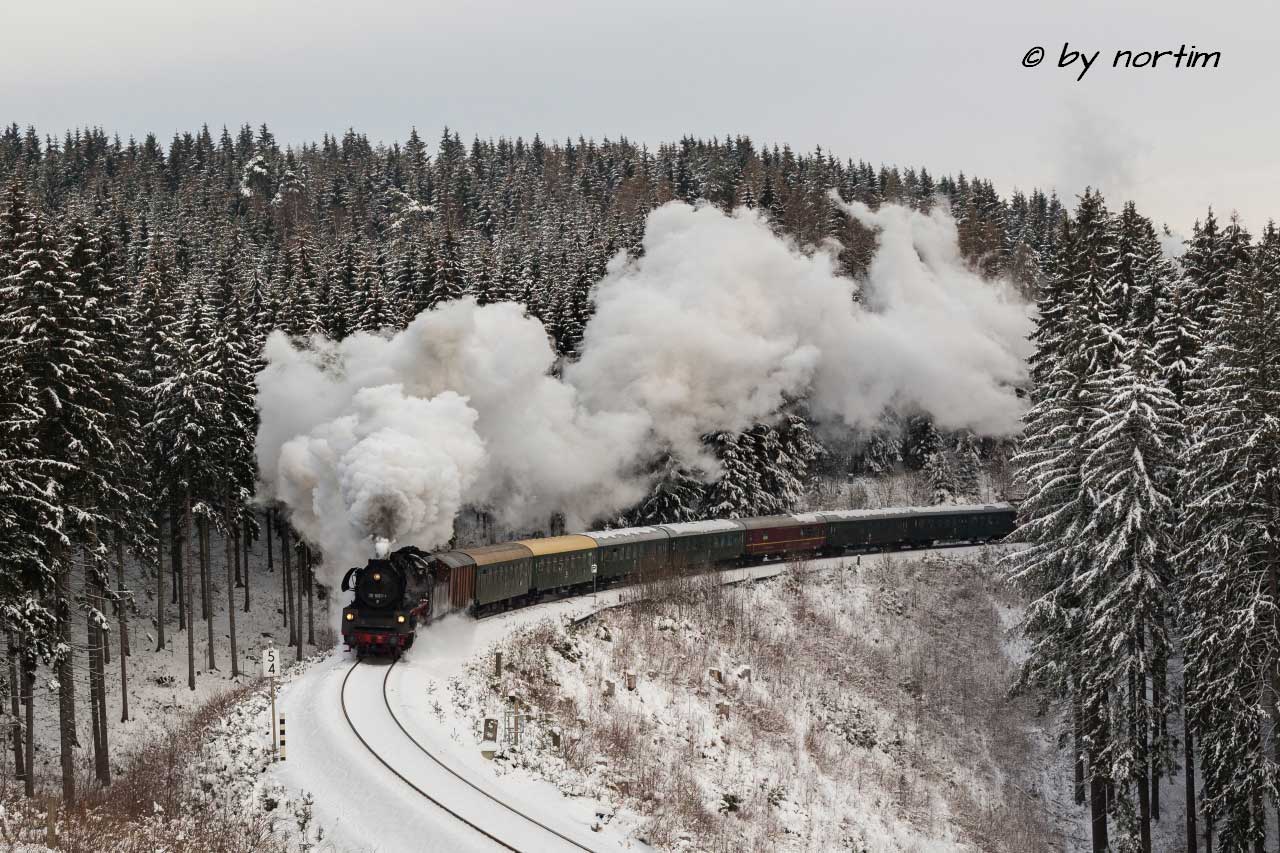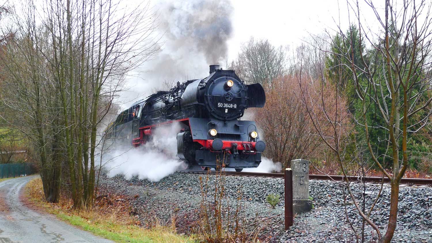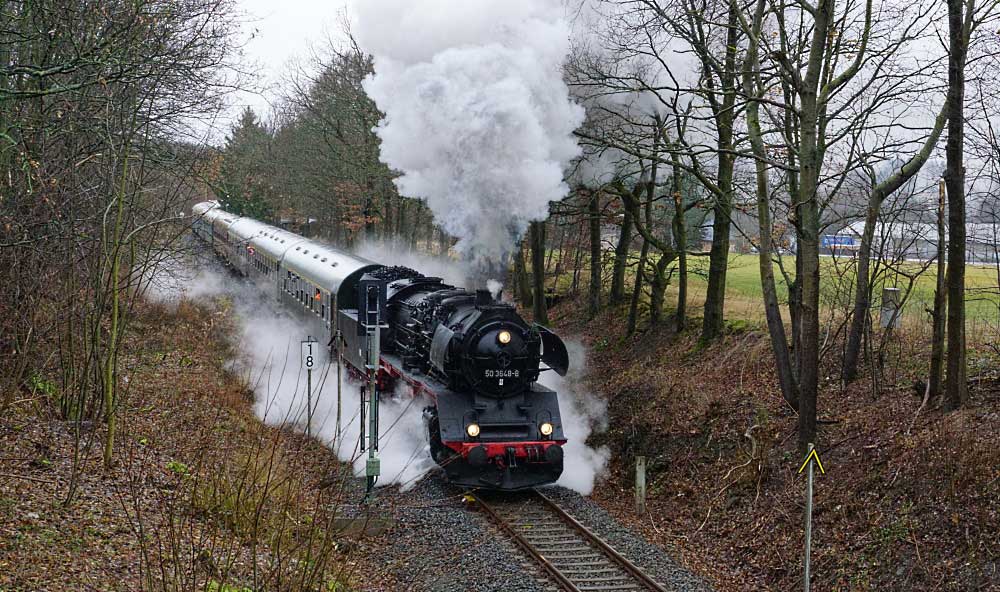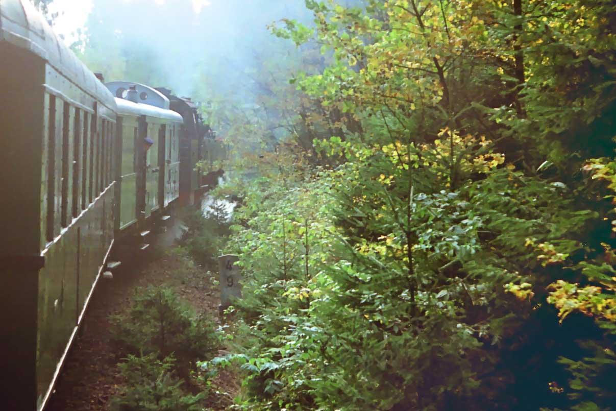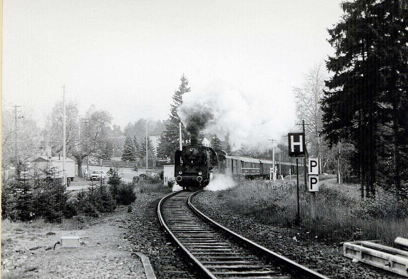 km 4,9 zwischen Falkenstein (Vogtl) und Grünbach - Sonderzug mit 86 001 nach