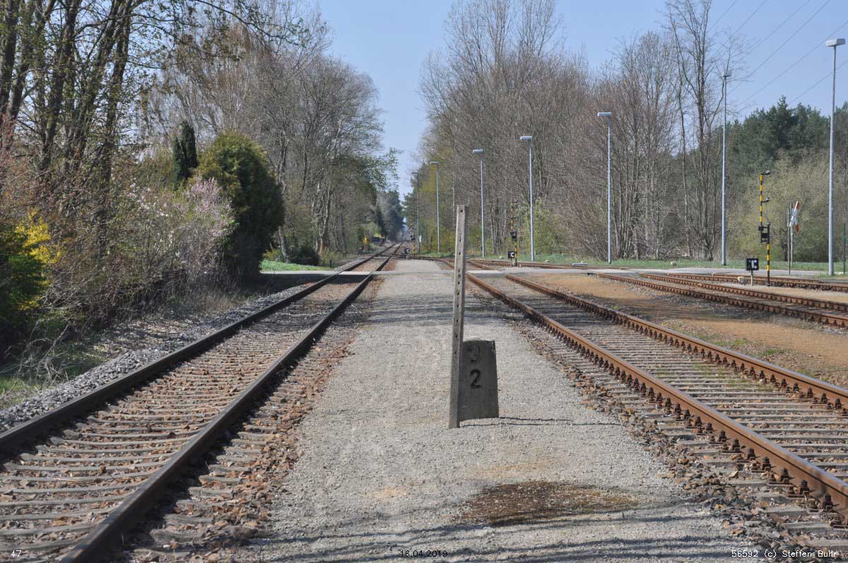 km 32,92 der Strecke Großenhain Cottb. Bf 0,0 - Senftenberg 45,29 - Cottbus 79,67 - Frankfurt (Oder) Pbf 152,85 (Personenzuggleise)/152,79 (Güterzuggleise) |
