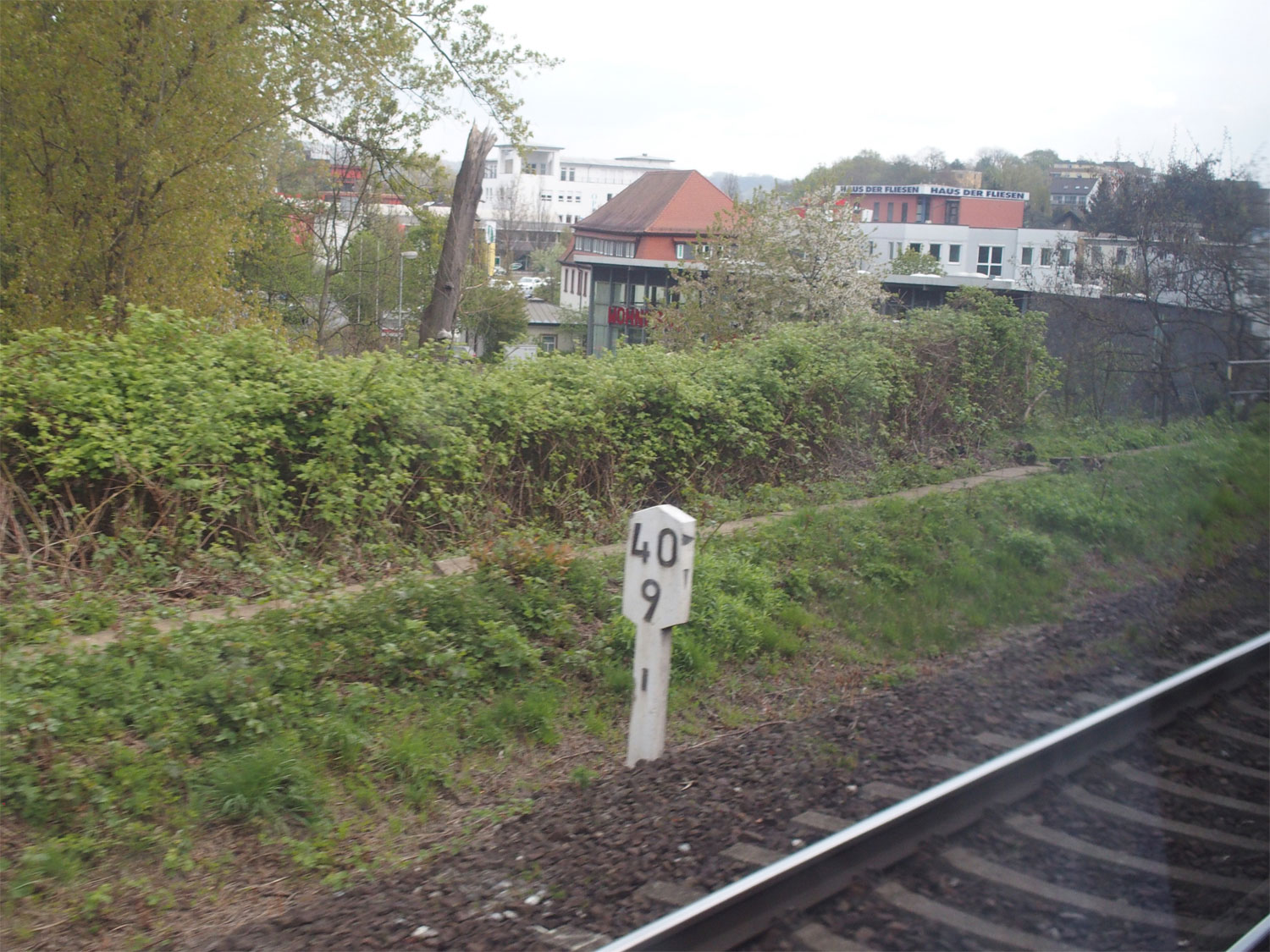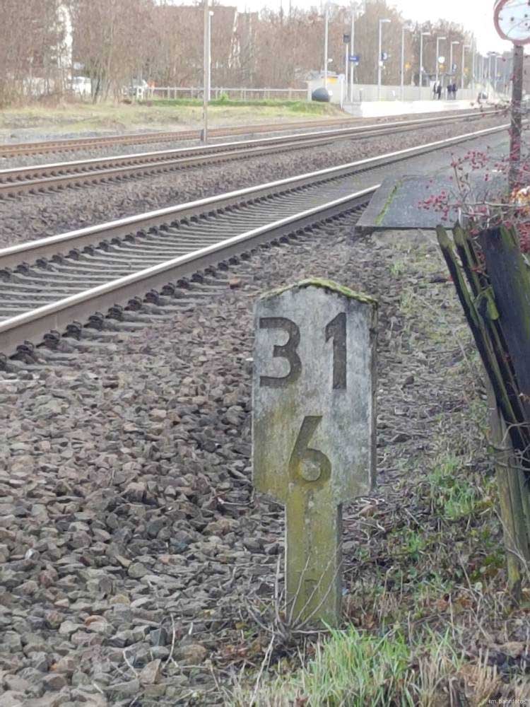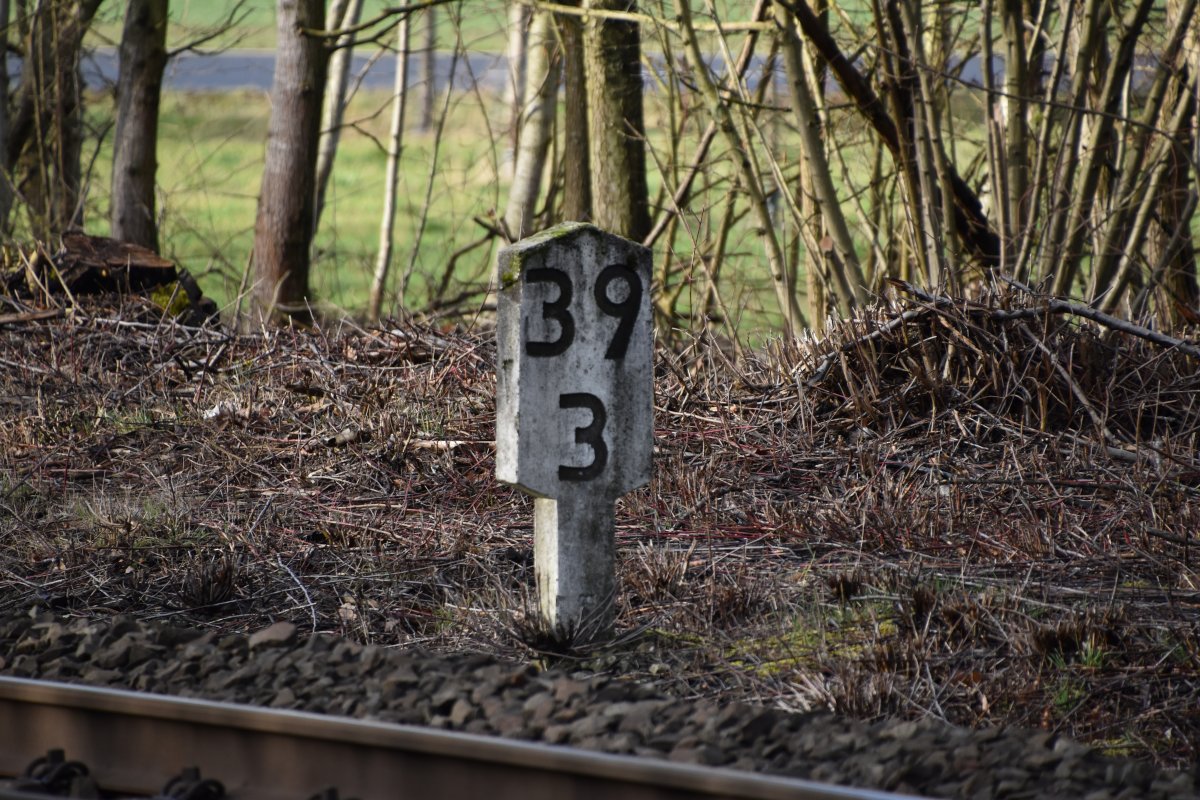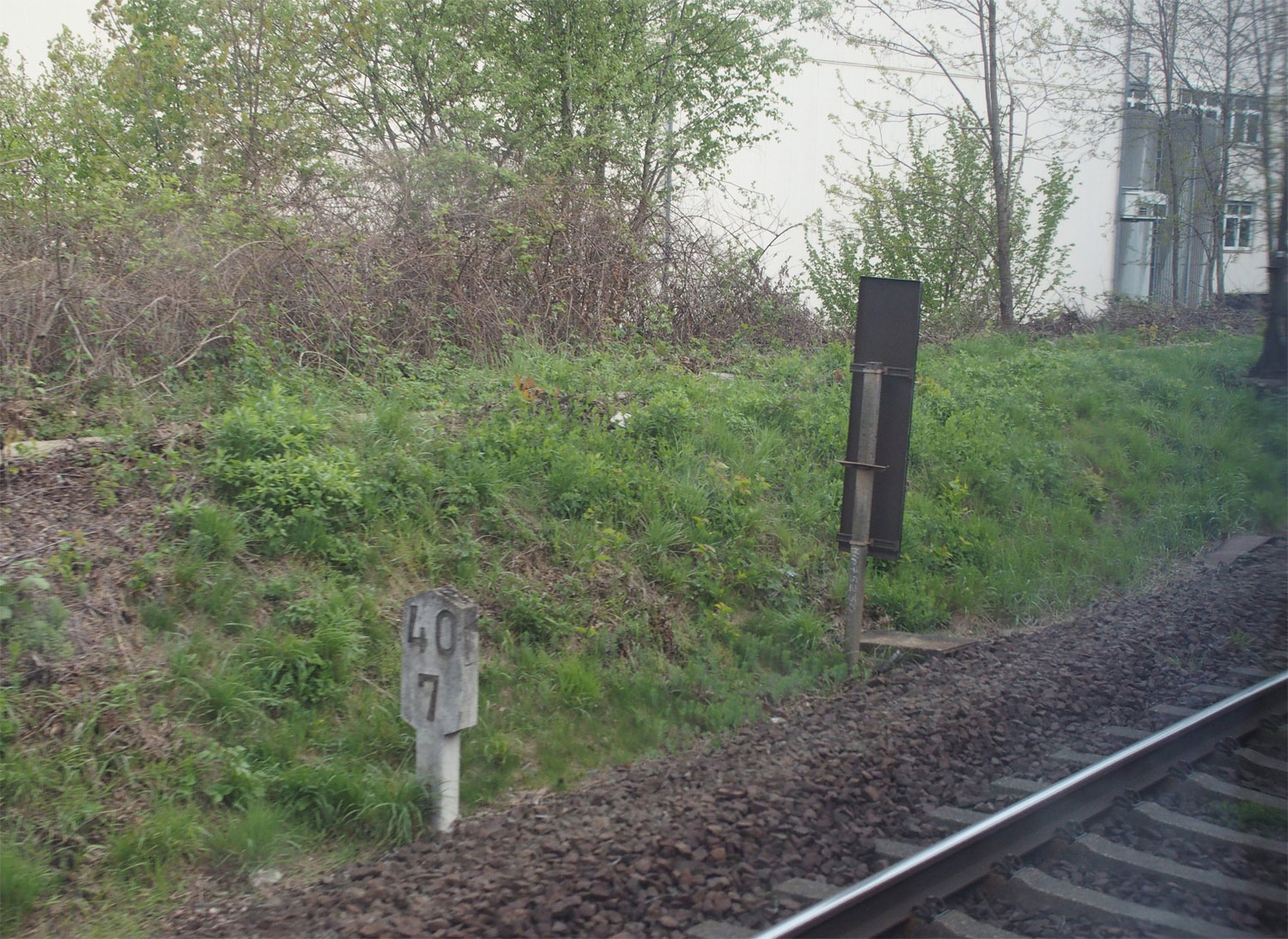 km 76,7 (Tafel rechts) gehört zur Strecke