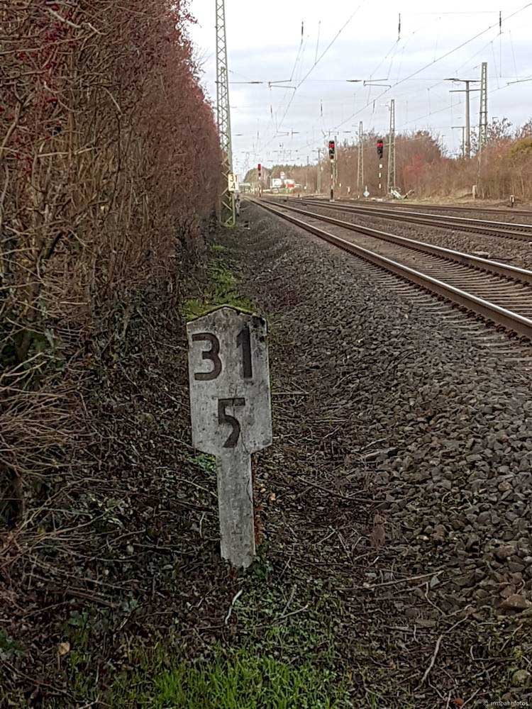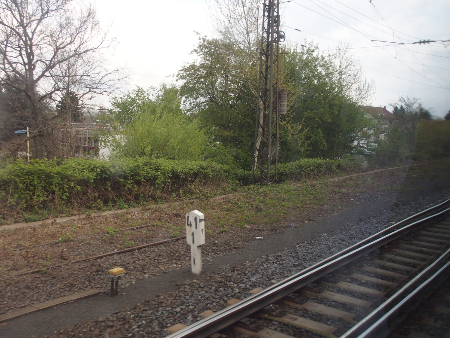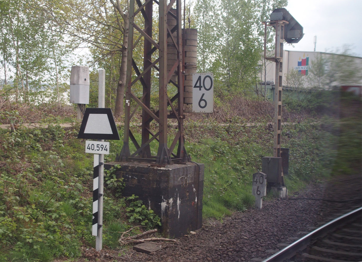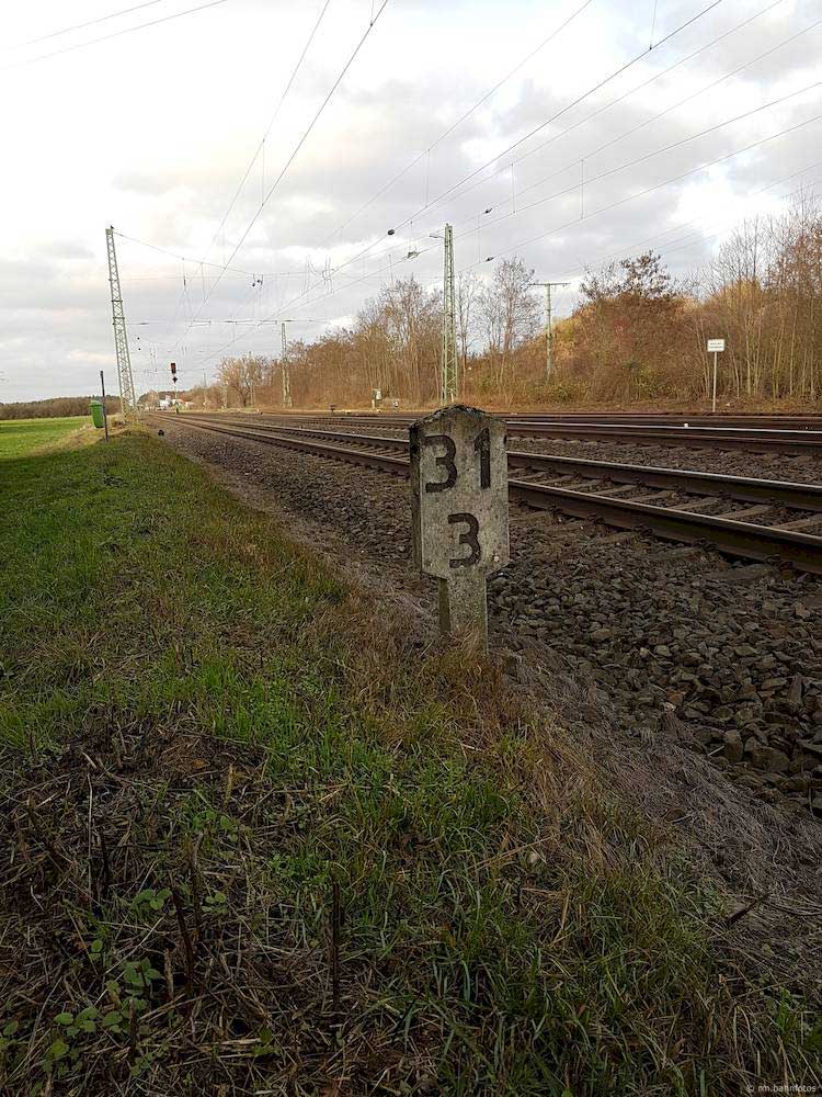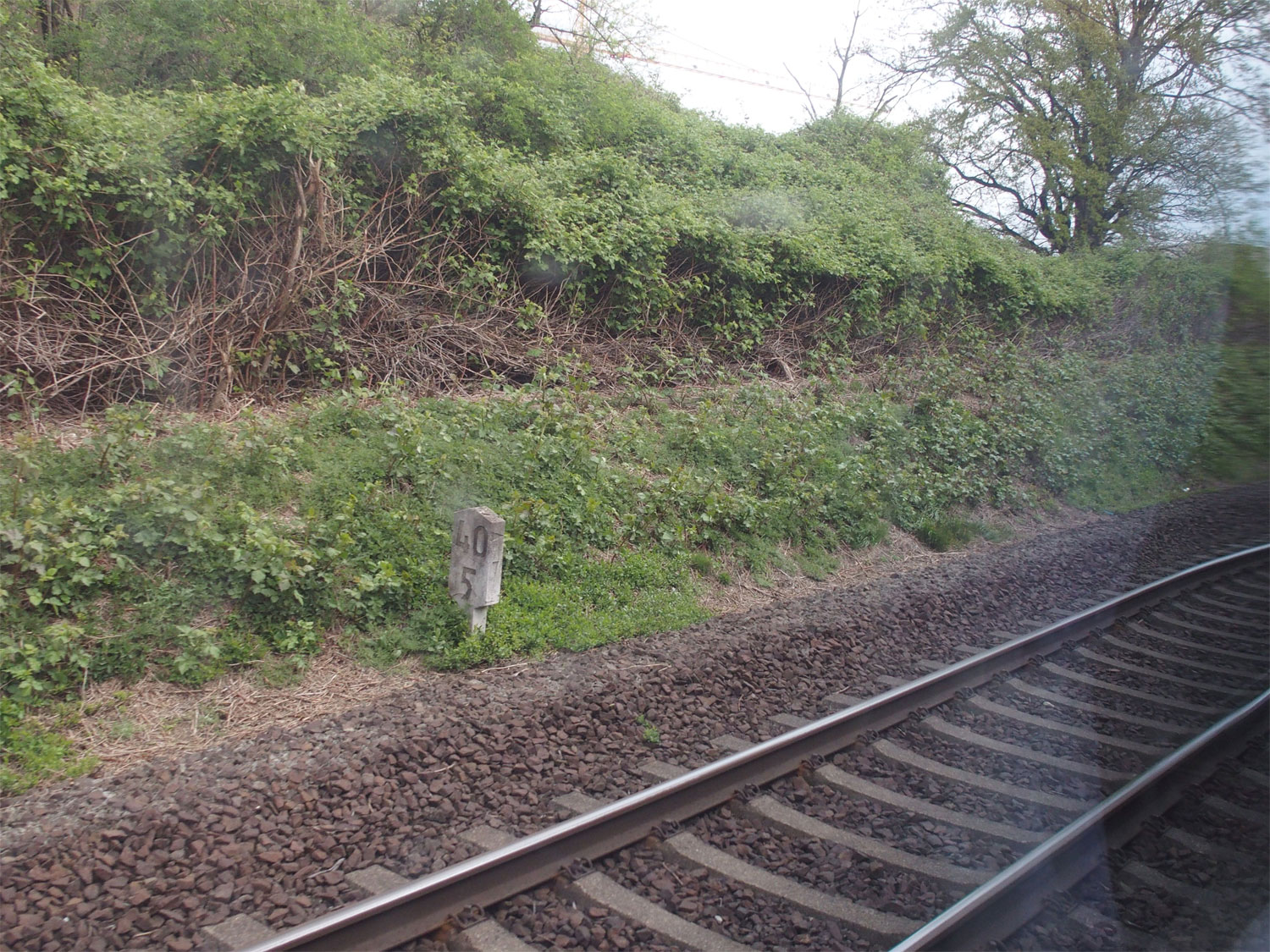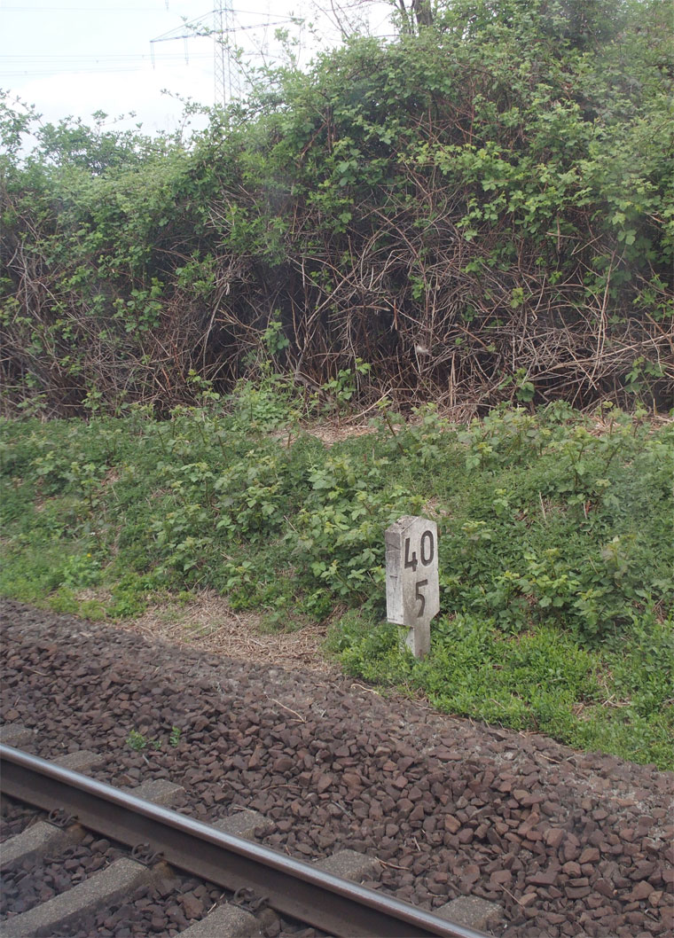 km 40,5 (Stein) und km 40,6 (Tafel und Stein) zwischen Abzw Steinerts und Aschaffenburg Hbf