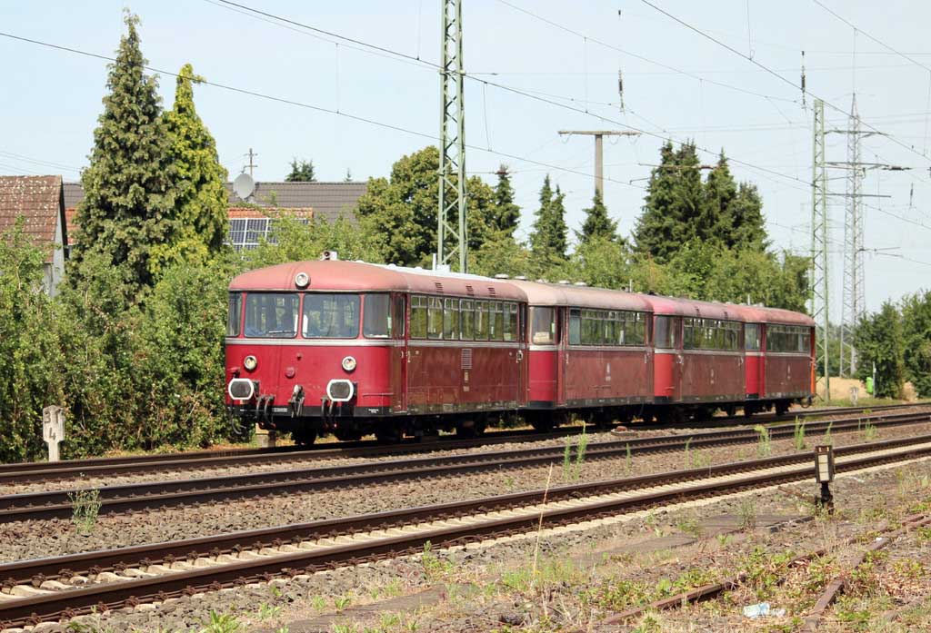 Vierteilige Schienenbus-Garnitur der Oberhessischen Eisenbahnfreunde mit 798 829 an der Zugspitze
