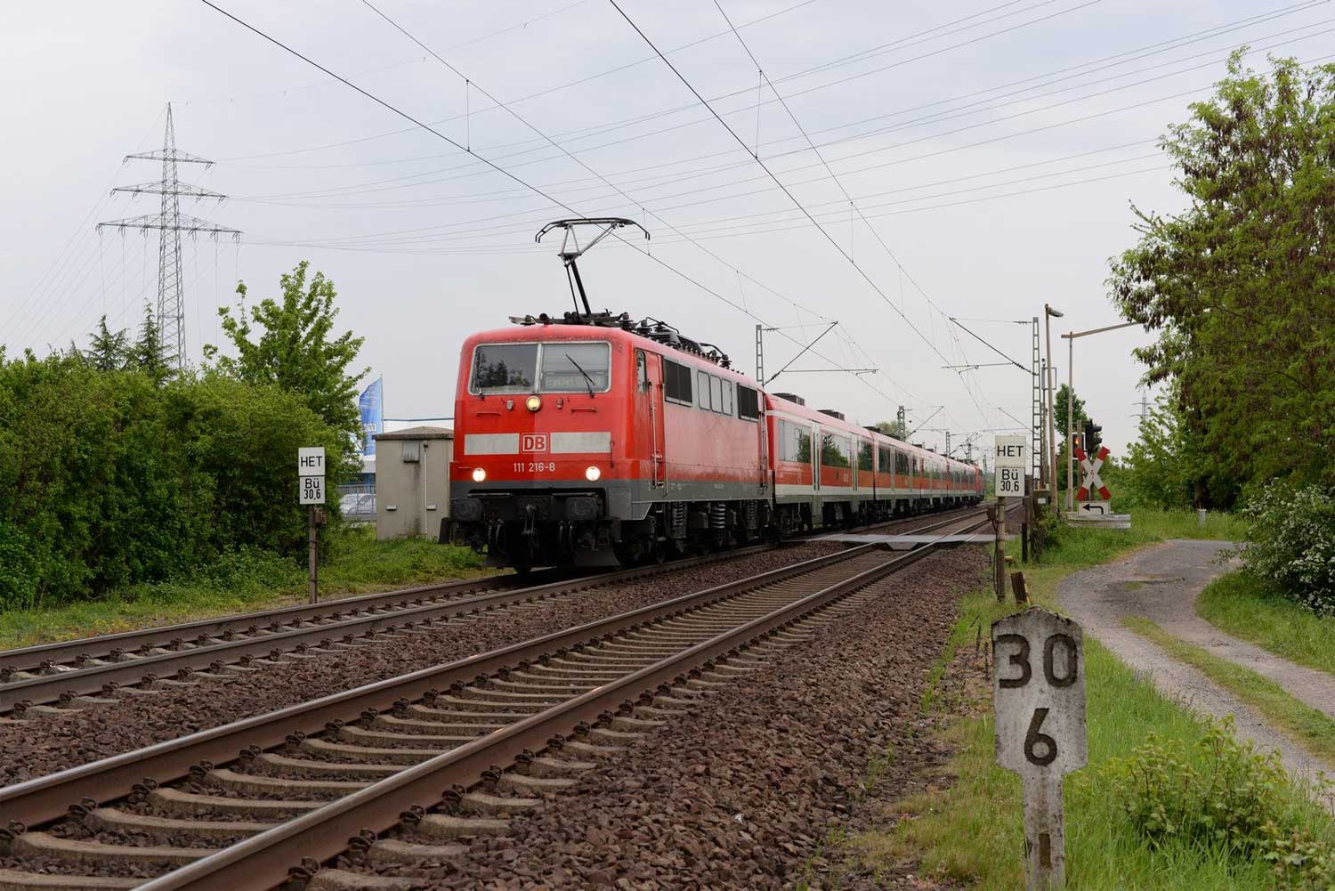 km 30,6 zwischen Kahl (Main) und Dettingen (Main) - 111 216 und 111 221 mit ihrem Sandwich-RE