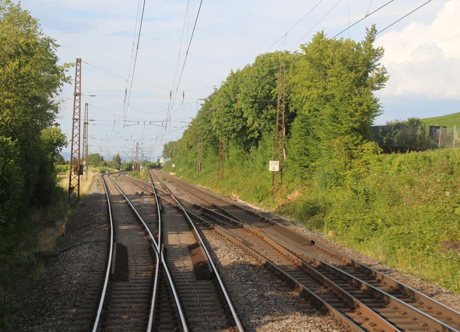 Rechts km 214,4 der Strecke Mannheim Hbf - Basel Bad Bf - Konstanz