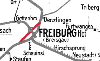 Abzw Gundelfingen 0,0 - Freiburg (Breisgau) Rbf 3,73 - Abzw Leutersberg 11,25 (1945)
