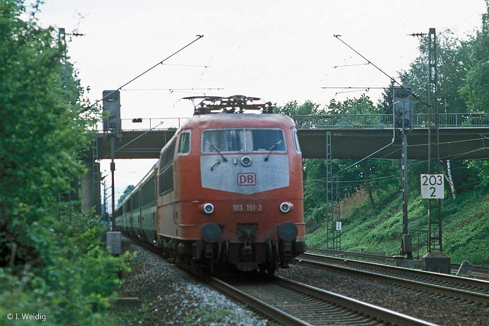 Rechts die Strecke Mannheim Hbf - Basel Bad Bf - Konstanz mit km 203,2