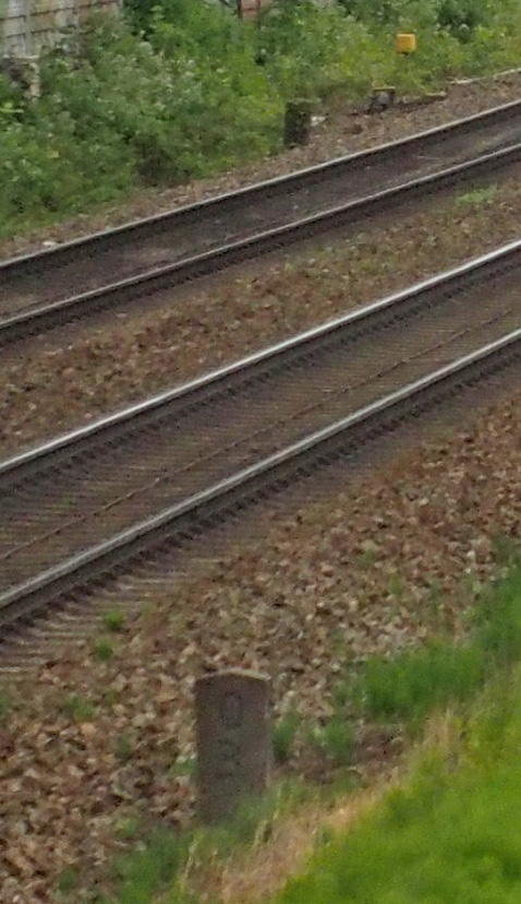km 0,6 (Stein und versteckte Tafel) zwischen Abzw Gundelfingen und Freiburg (Breisgau) Gbf - Blick Richtung Abzw Gundelfingen