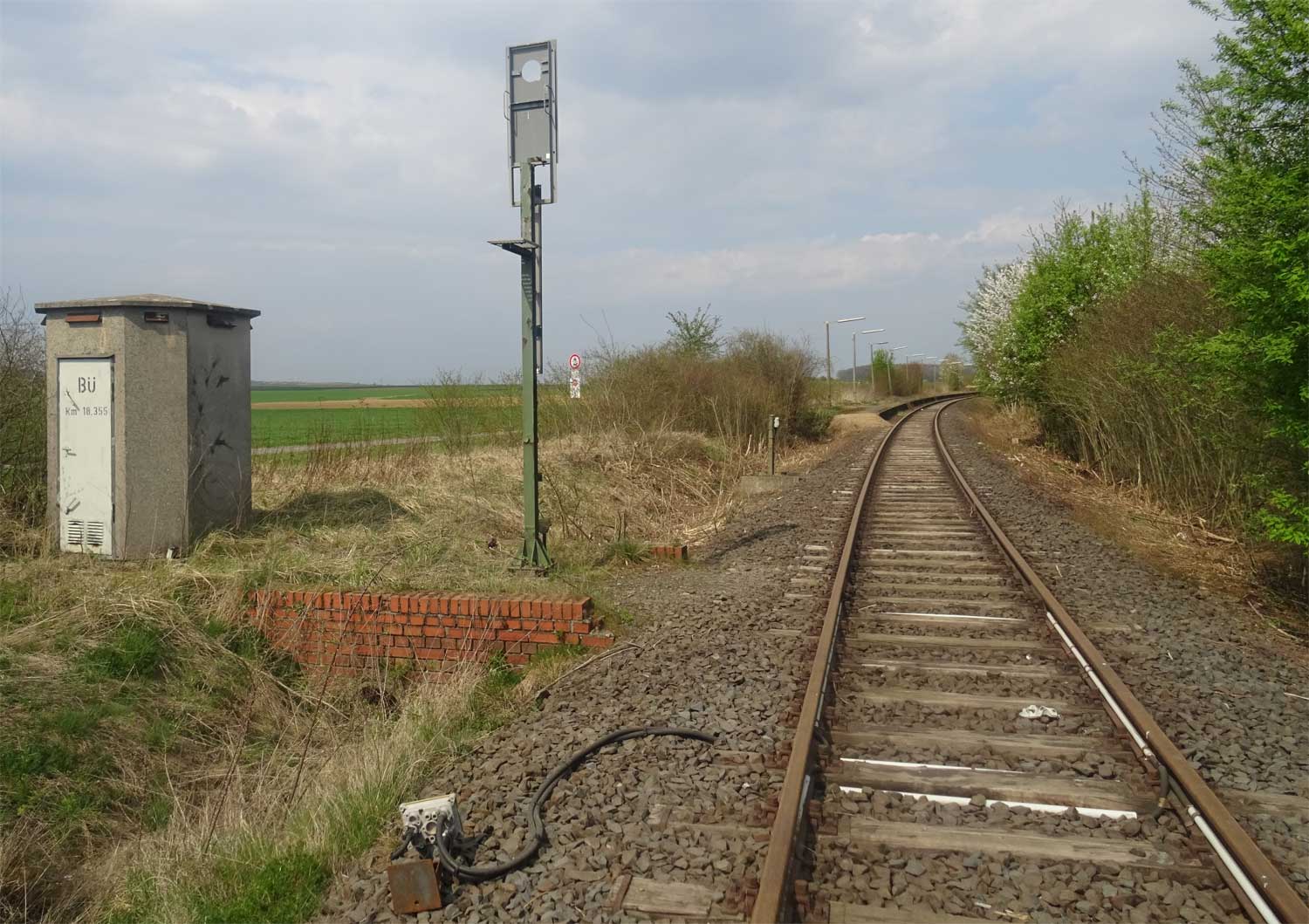 BÜ km 18,355 in Obbornhofen-Bellersheim - Blick Richtung Mücke