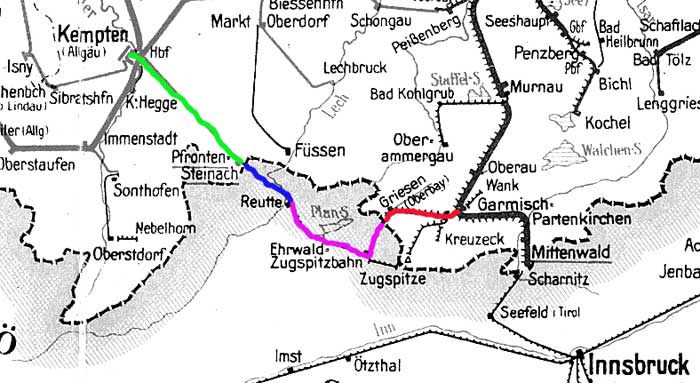 km 1,0 zwischen Kempten (Allgäu) und St Mang (früher: Kotten-Neudorf) - Blick Richtung Pfronten-Steinach - Reute in Tirol - Garmisch-Partenkirchen