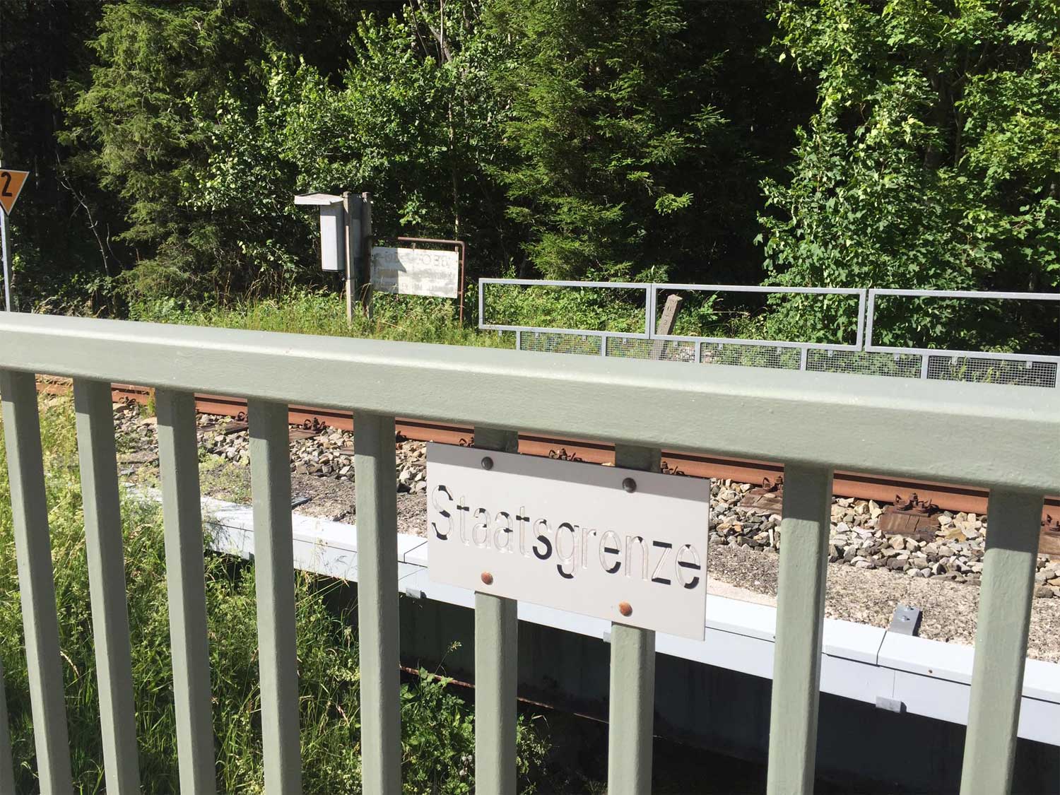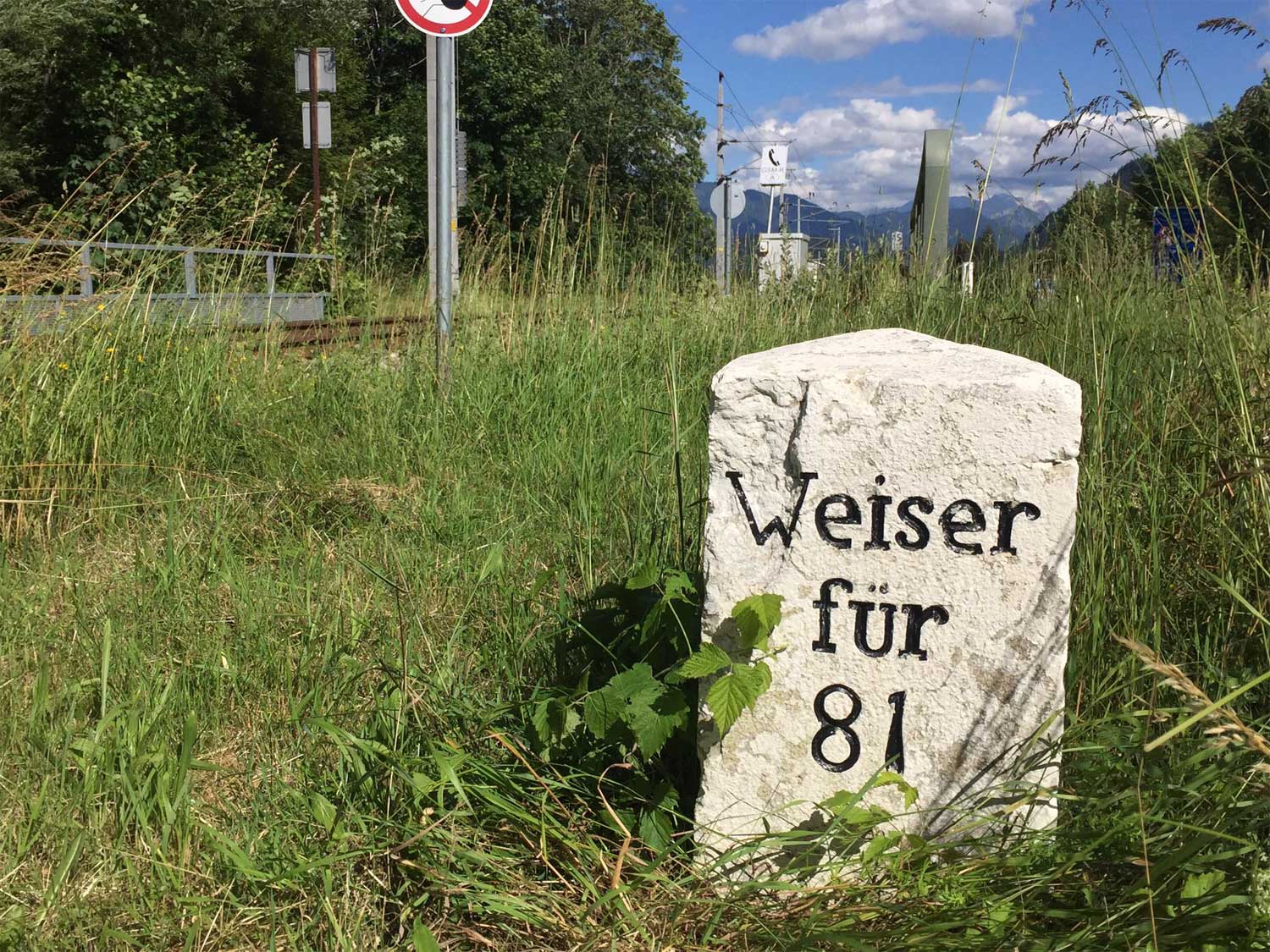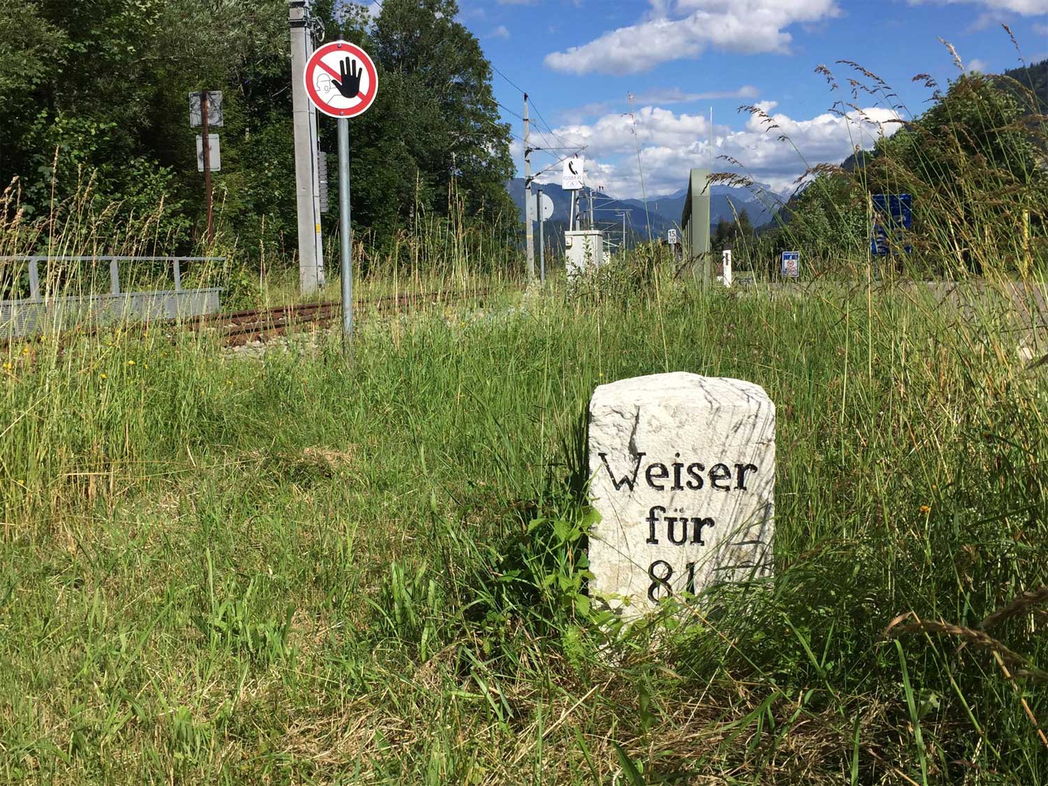 = km 14,390 - Schönbichl 0,5 - Staatsgrenze Österreich/Deutschland km 0,0 = km