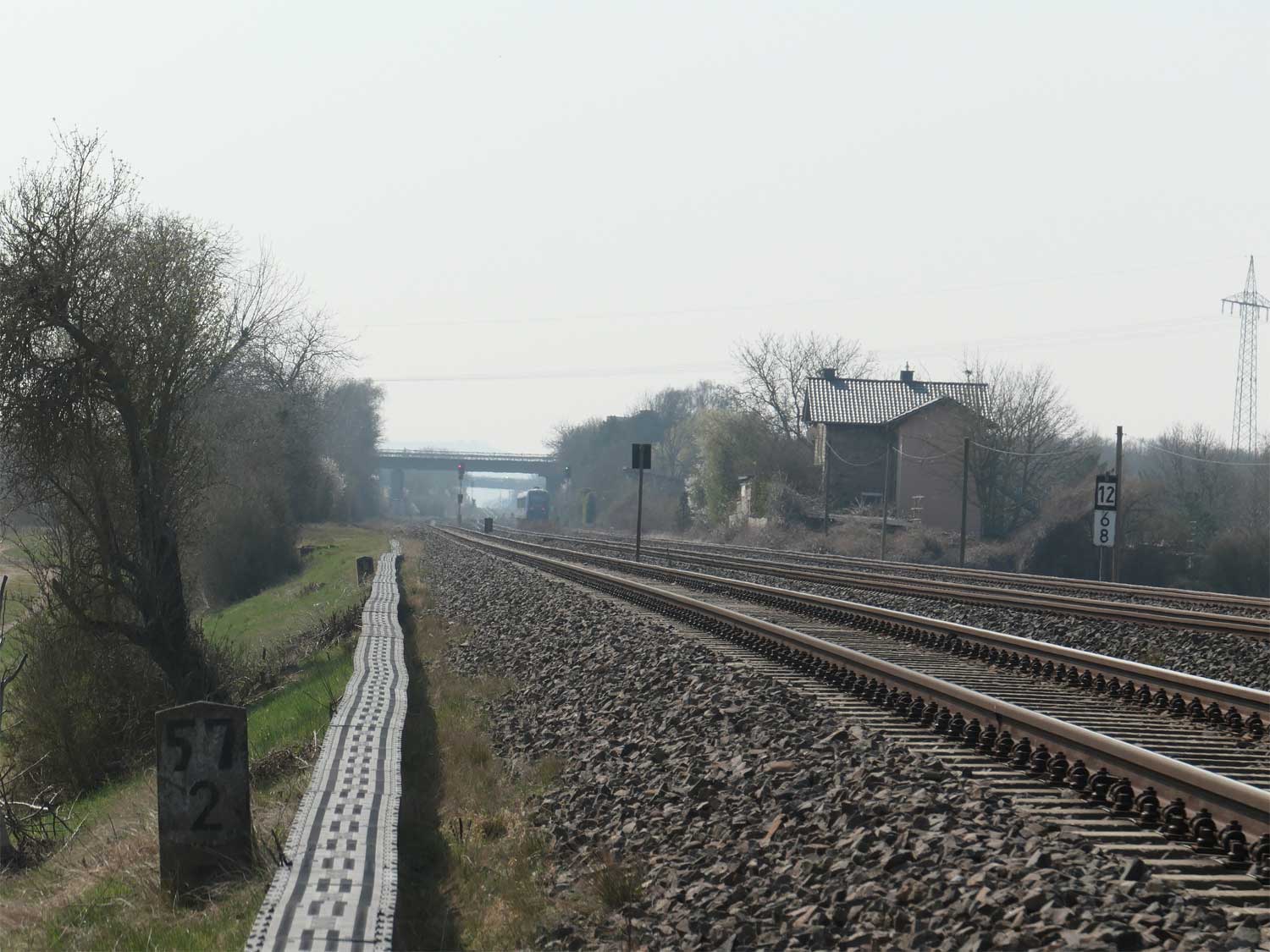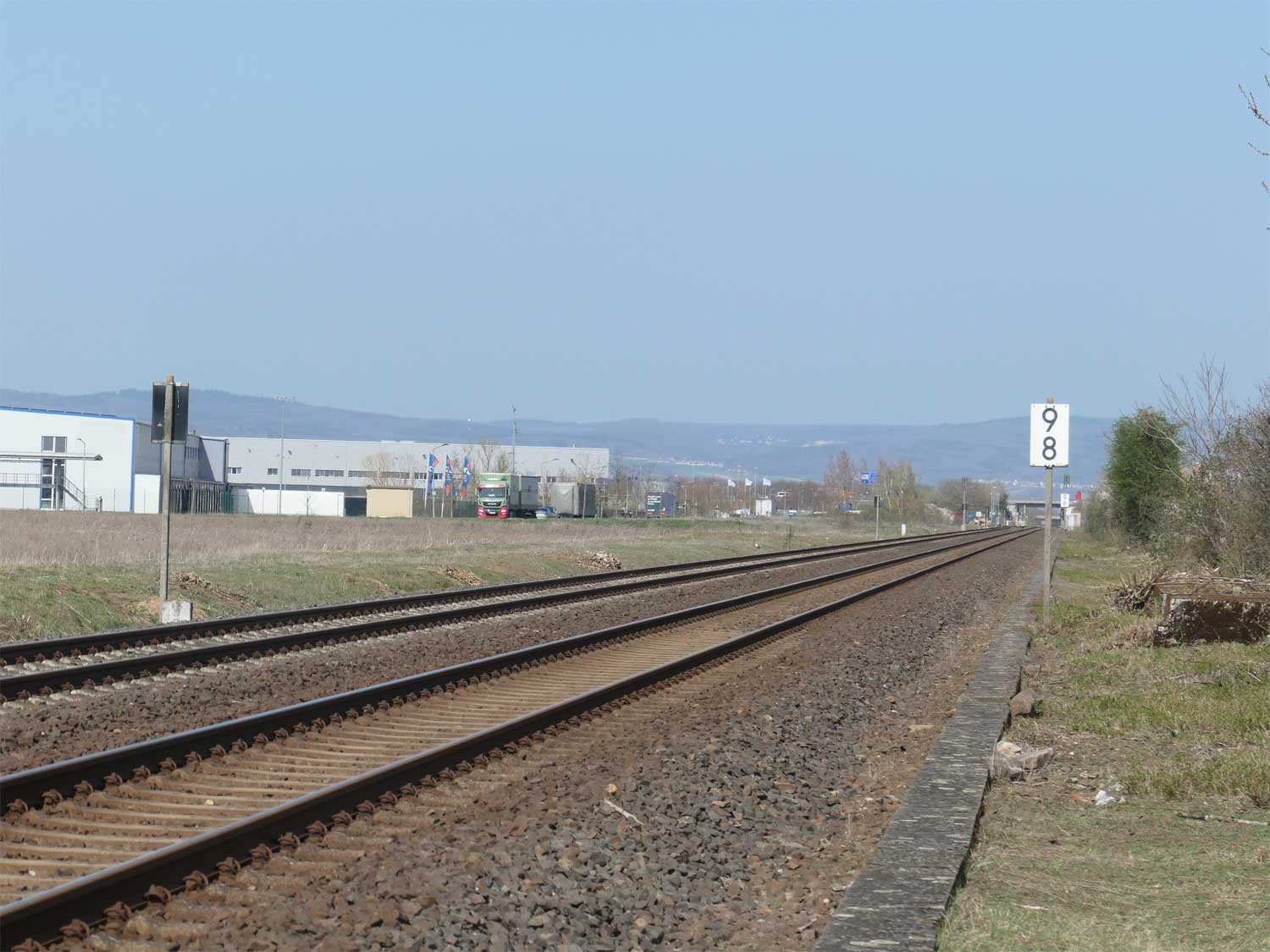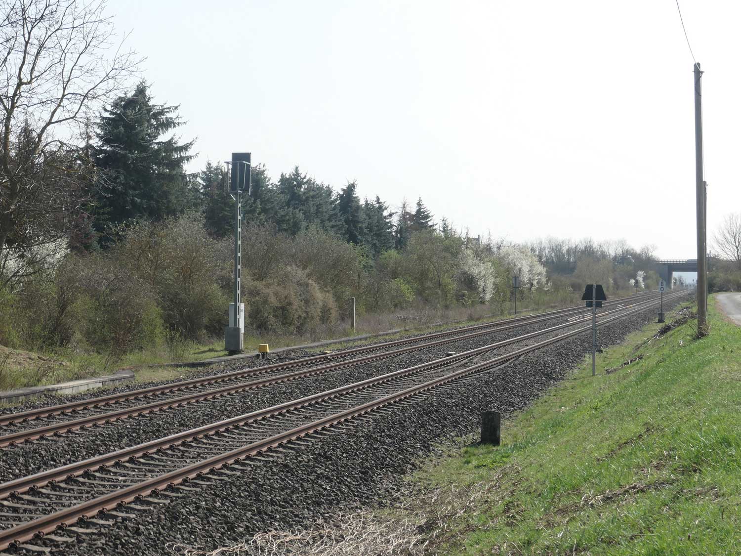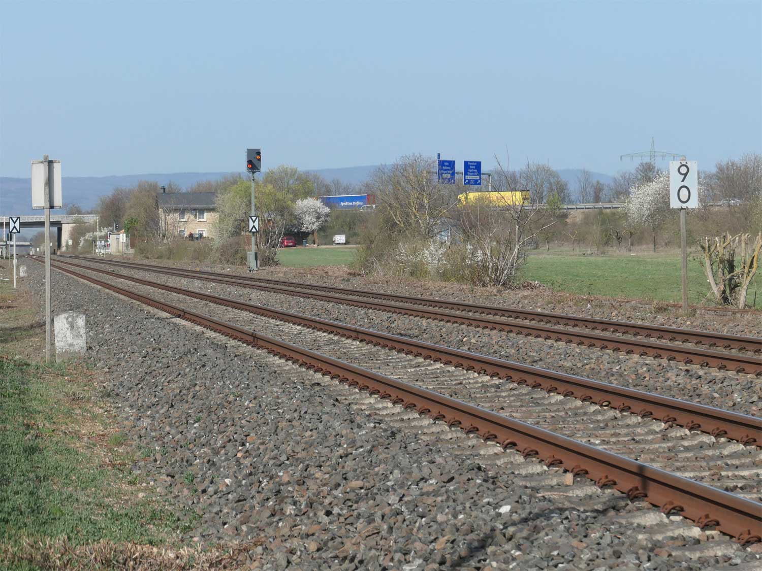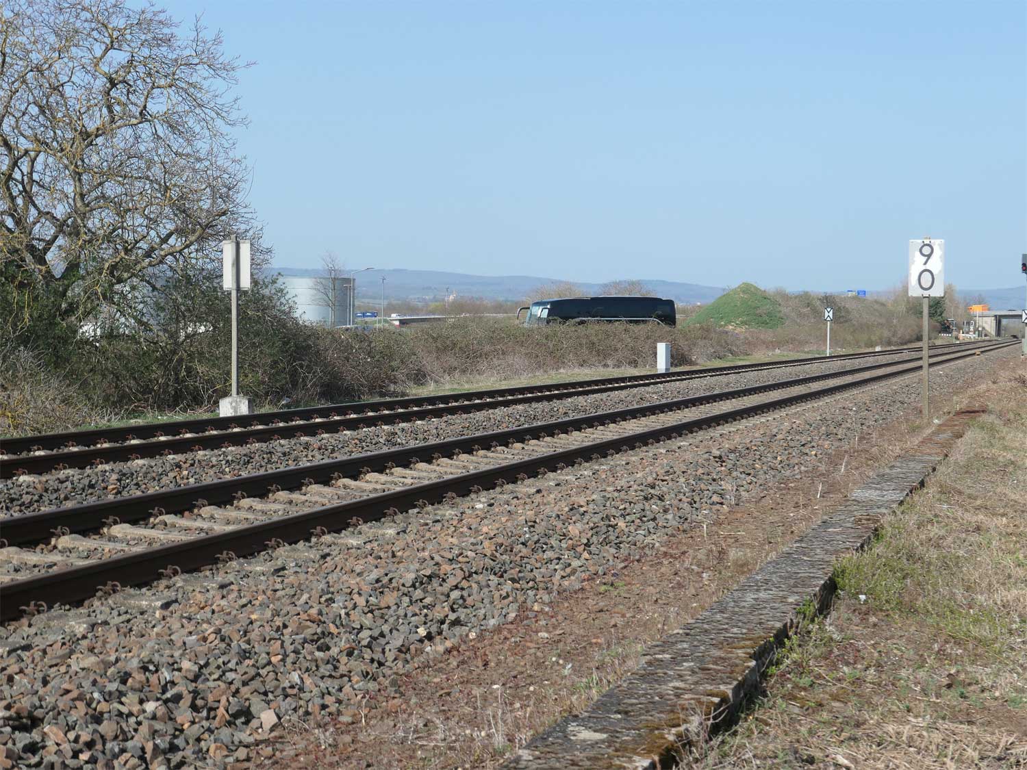 Büdesheim-Dromersheim 7,32 km 56,57 der Strecke Worms Hbf 0,0 - Monsheim 11,55 - Alzey 30,03 - Bingen (Rhein) 63,38
