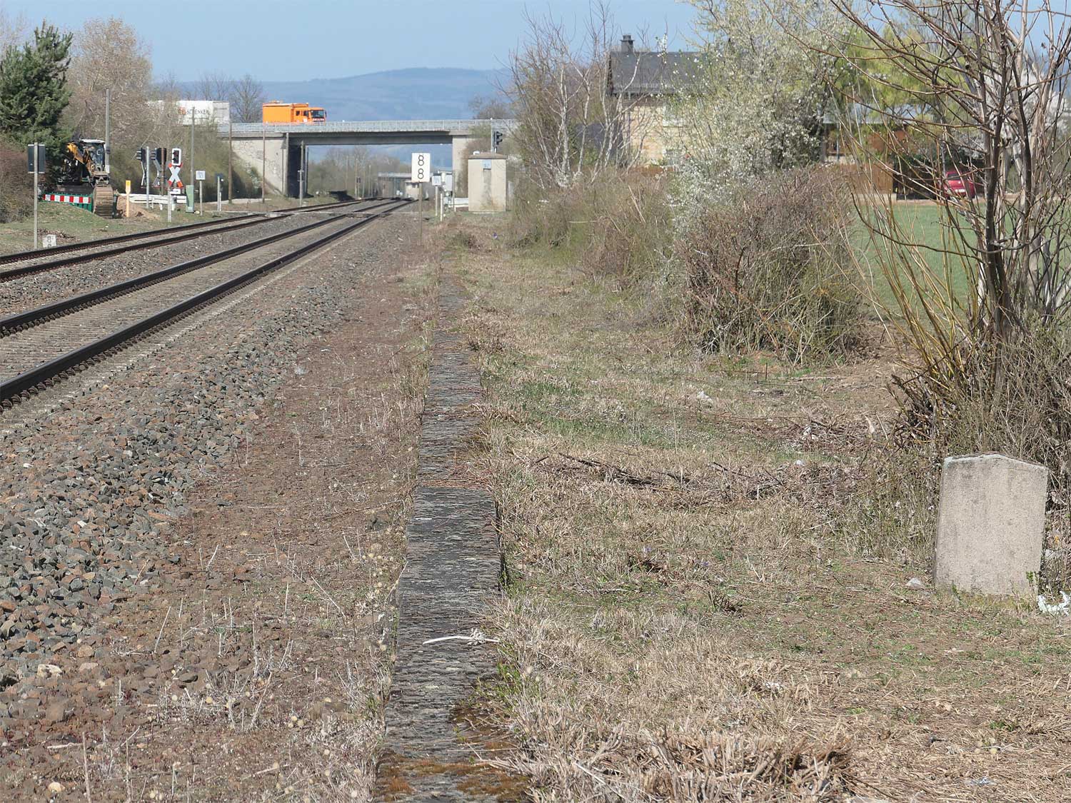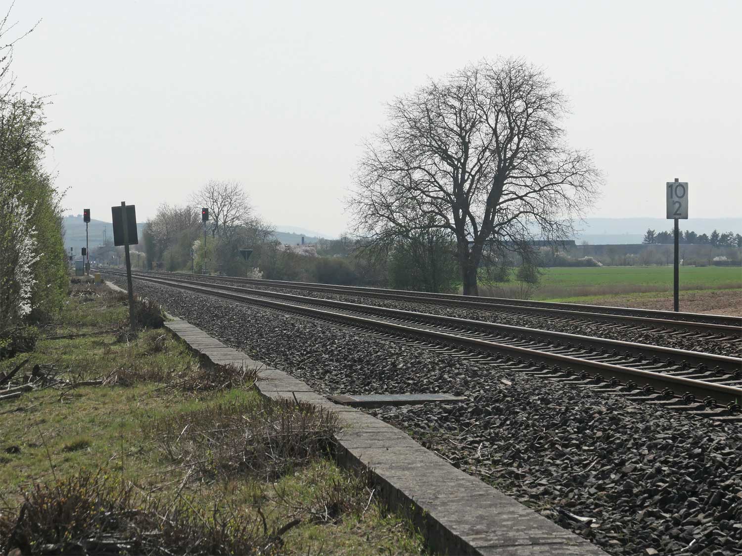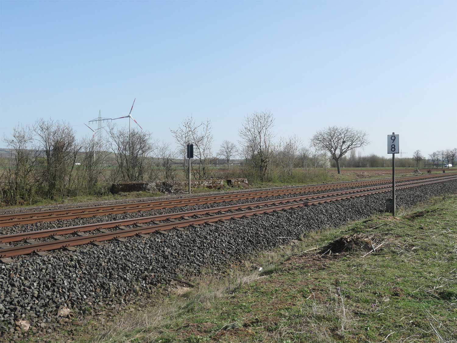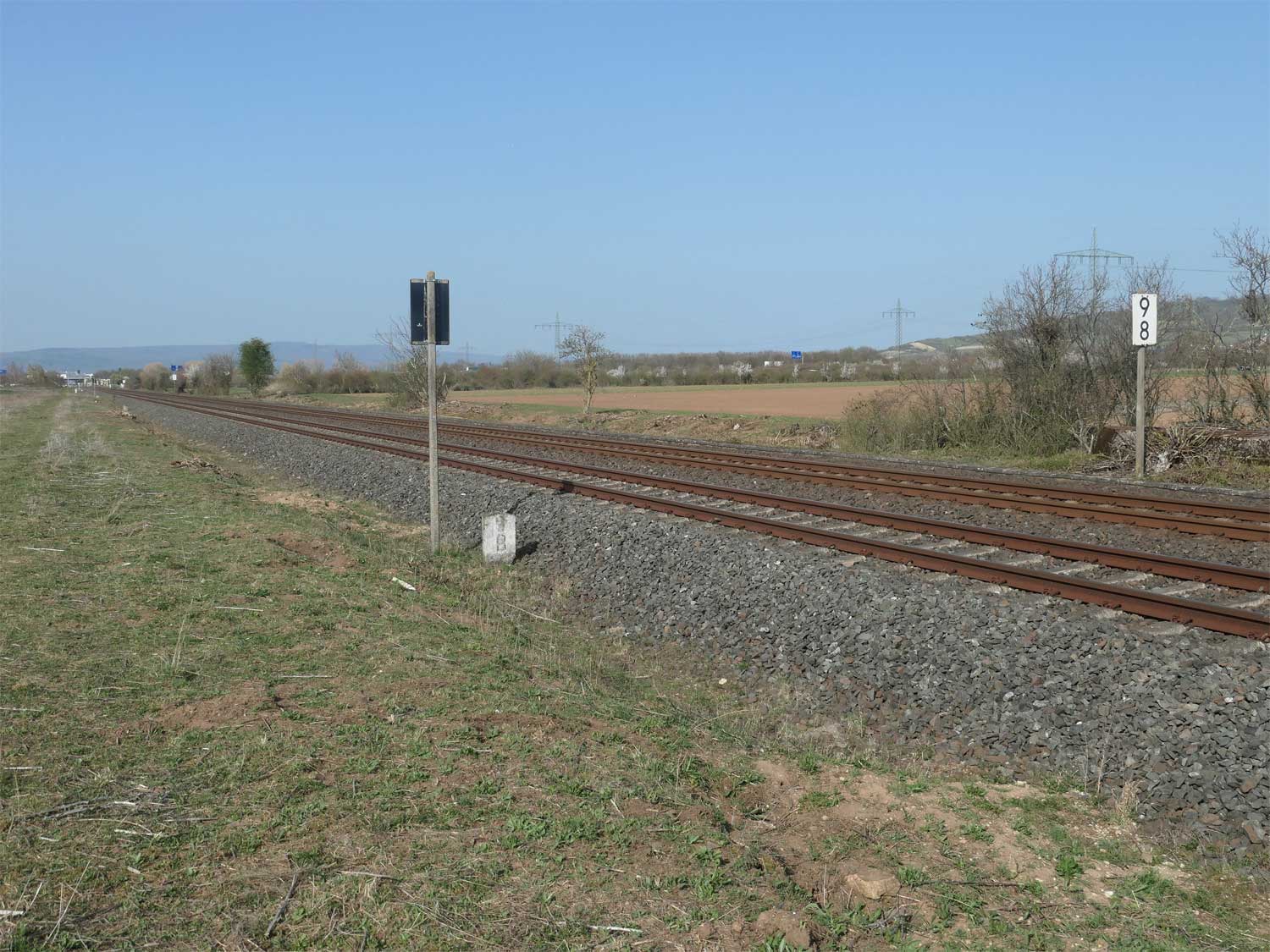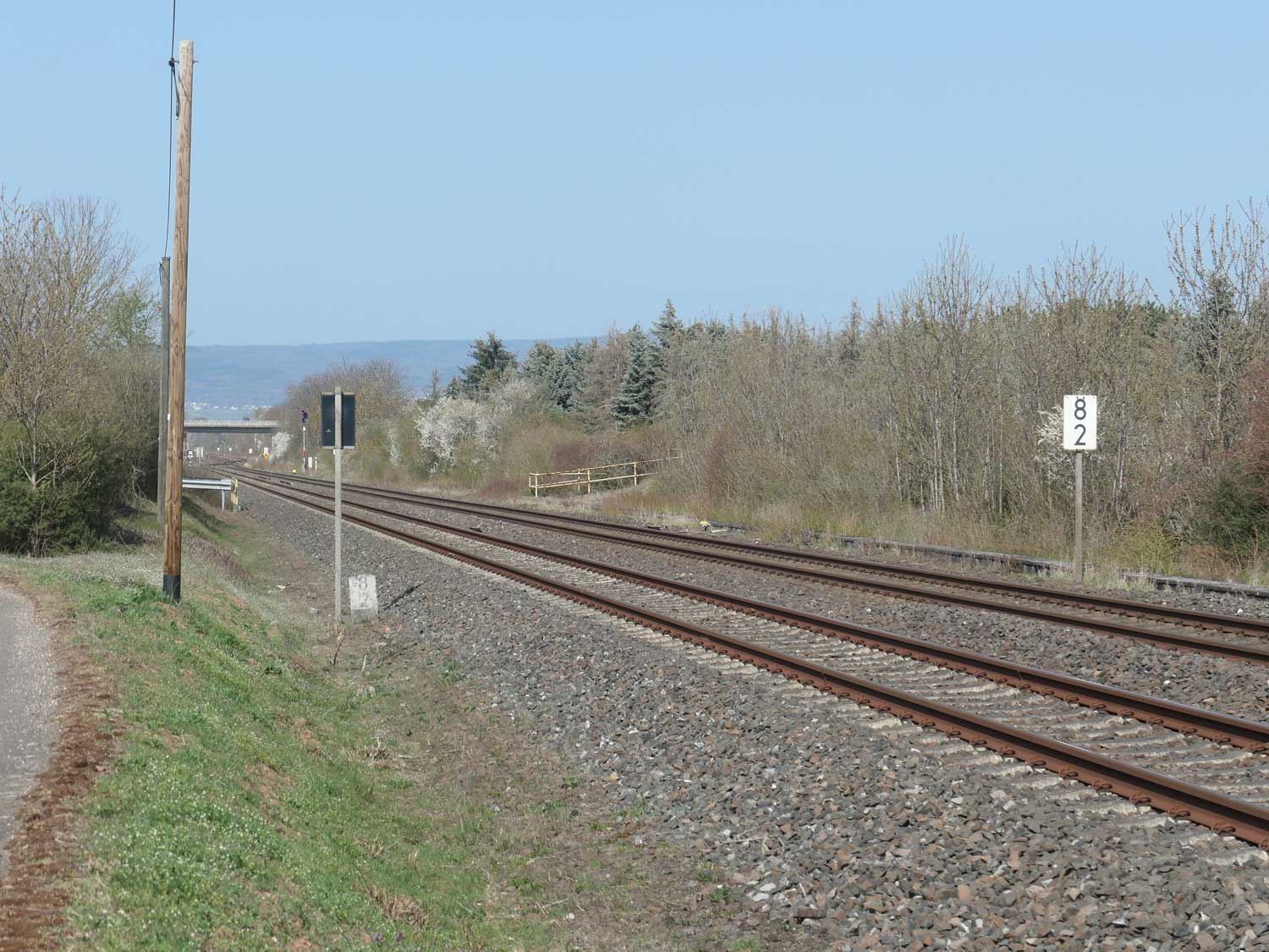 Büdesheim-Dromersheim 7,32 km 56,57 der Strecke Worms Hbf 0,0 - Monsheim 11,55 - Alzey 30,03 - Bingen (Rhein) 63,38