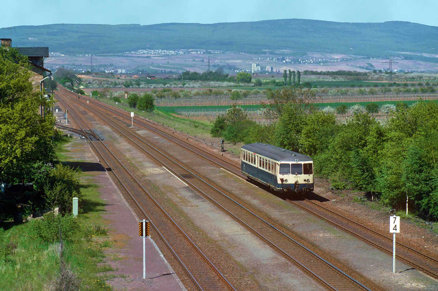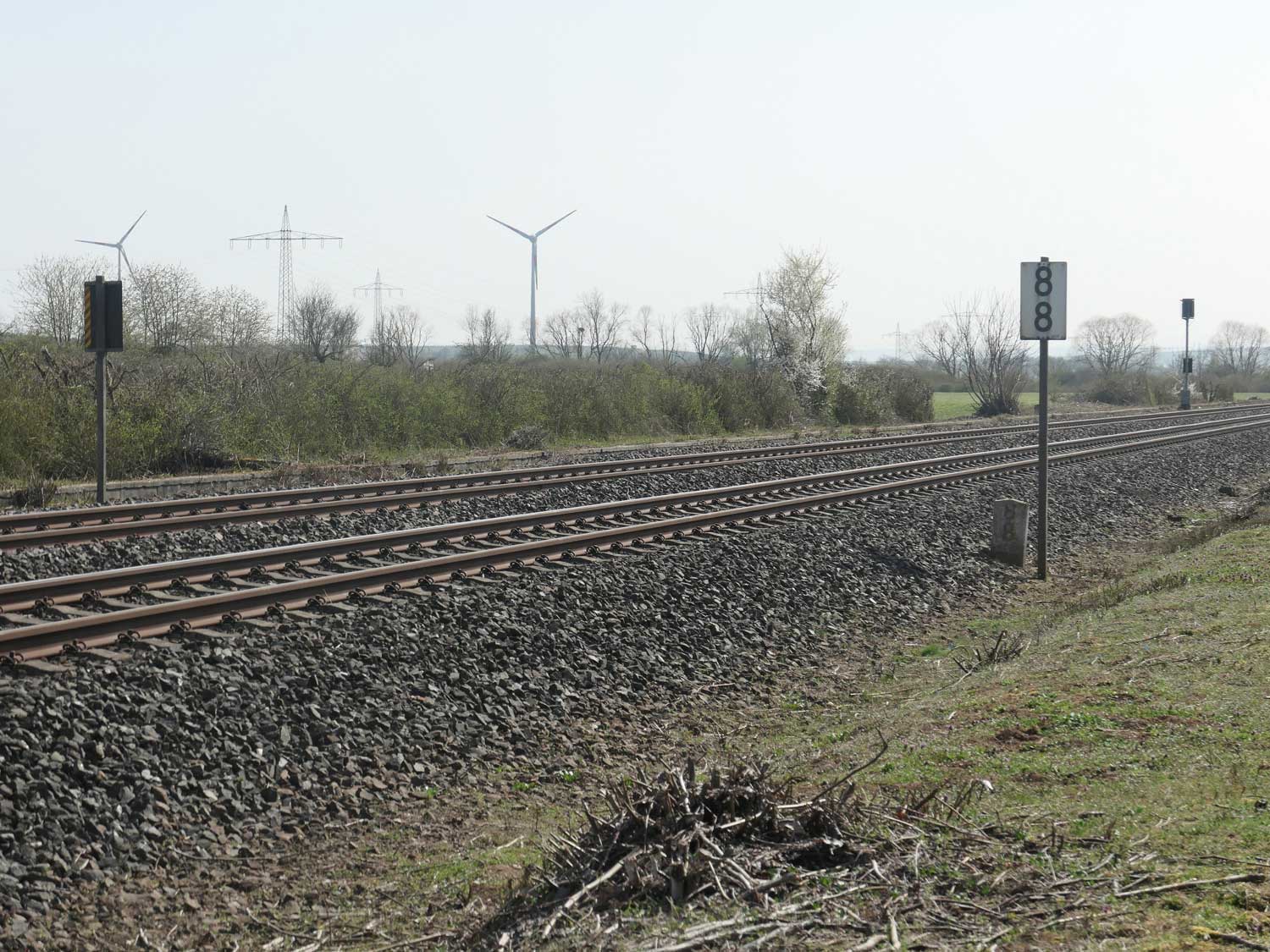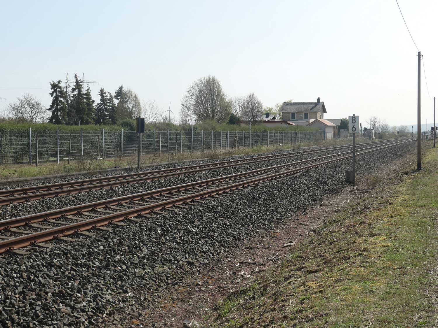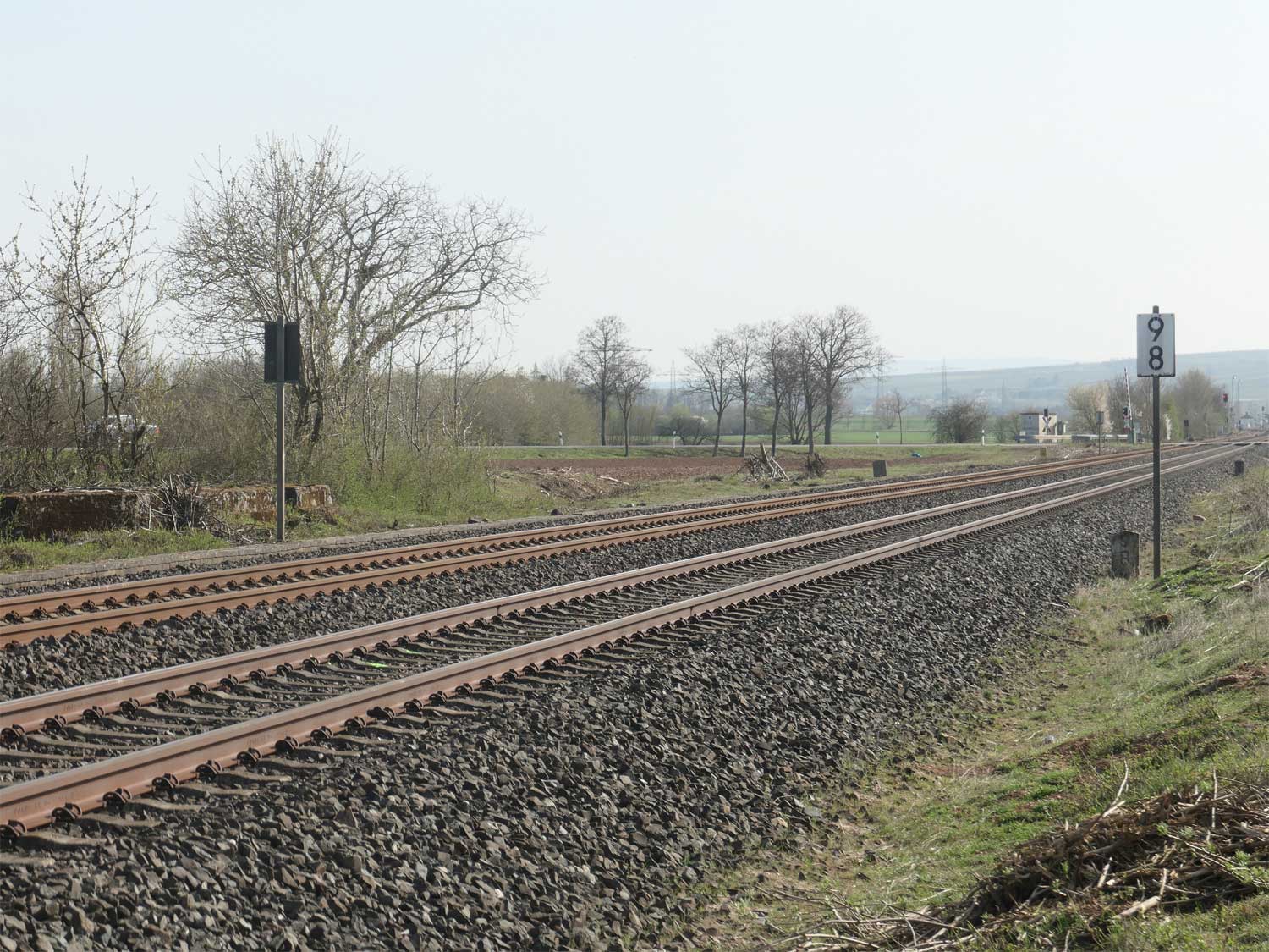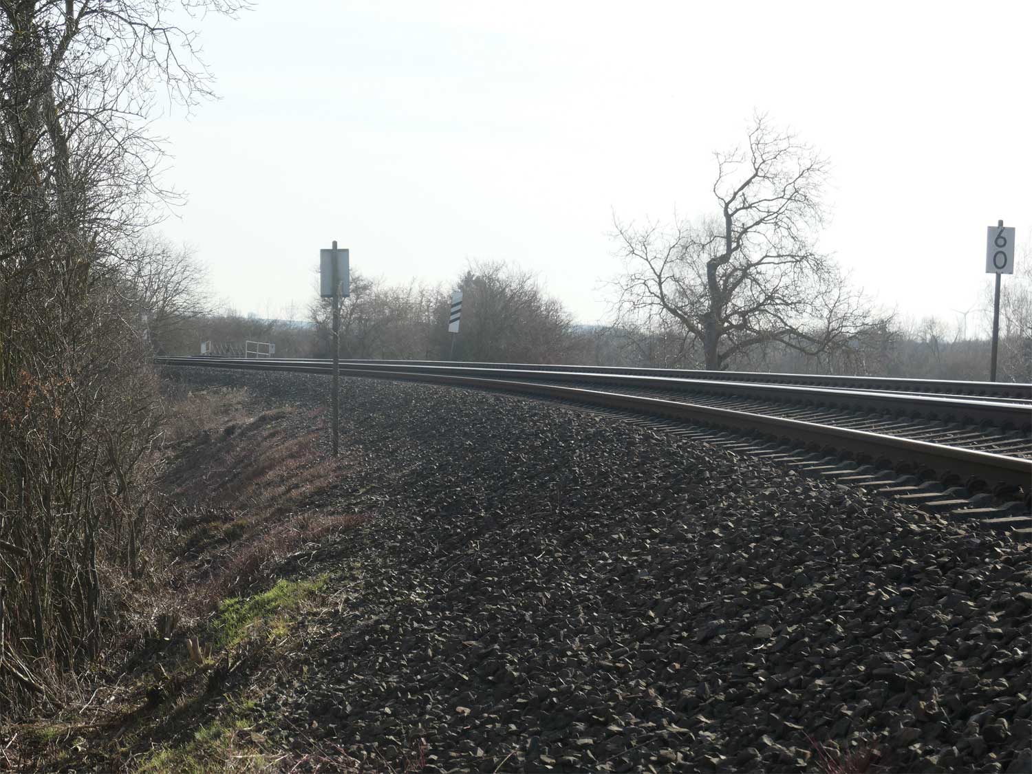 Büdesheim-Dromersheim 7,32 km 56,57 der Strecke Worms Hbf 0,0 - Monsheim 11,55 - Alzey 30,03 - Bingen (Rhein) 63,38