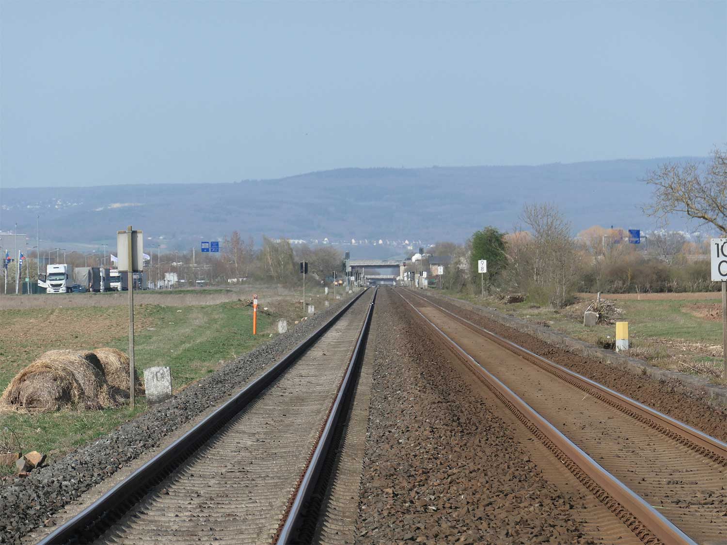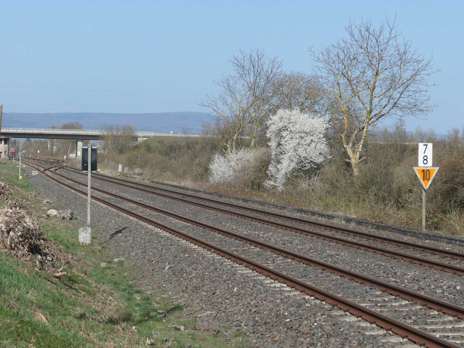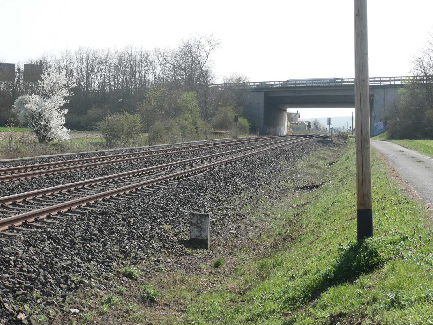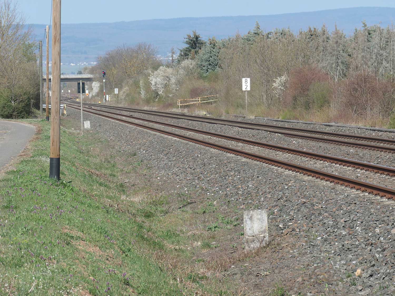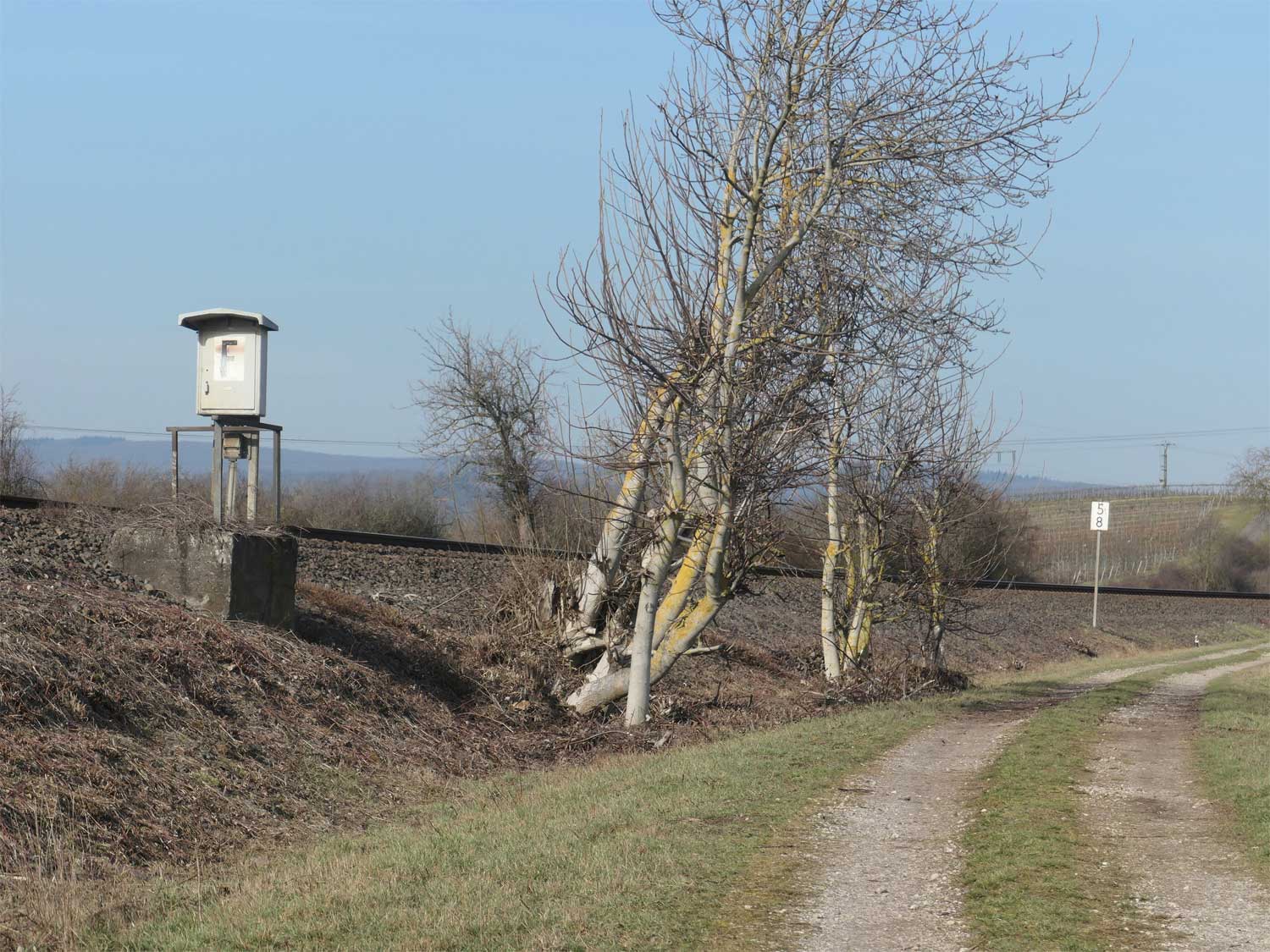 km 7,4 in Büdesheim-Dromersheim (heute: Abzw Büdesheim-Dromersheim) - Blick Richtung Gau-Algesheim