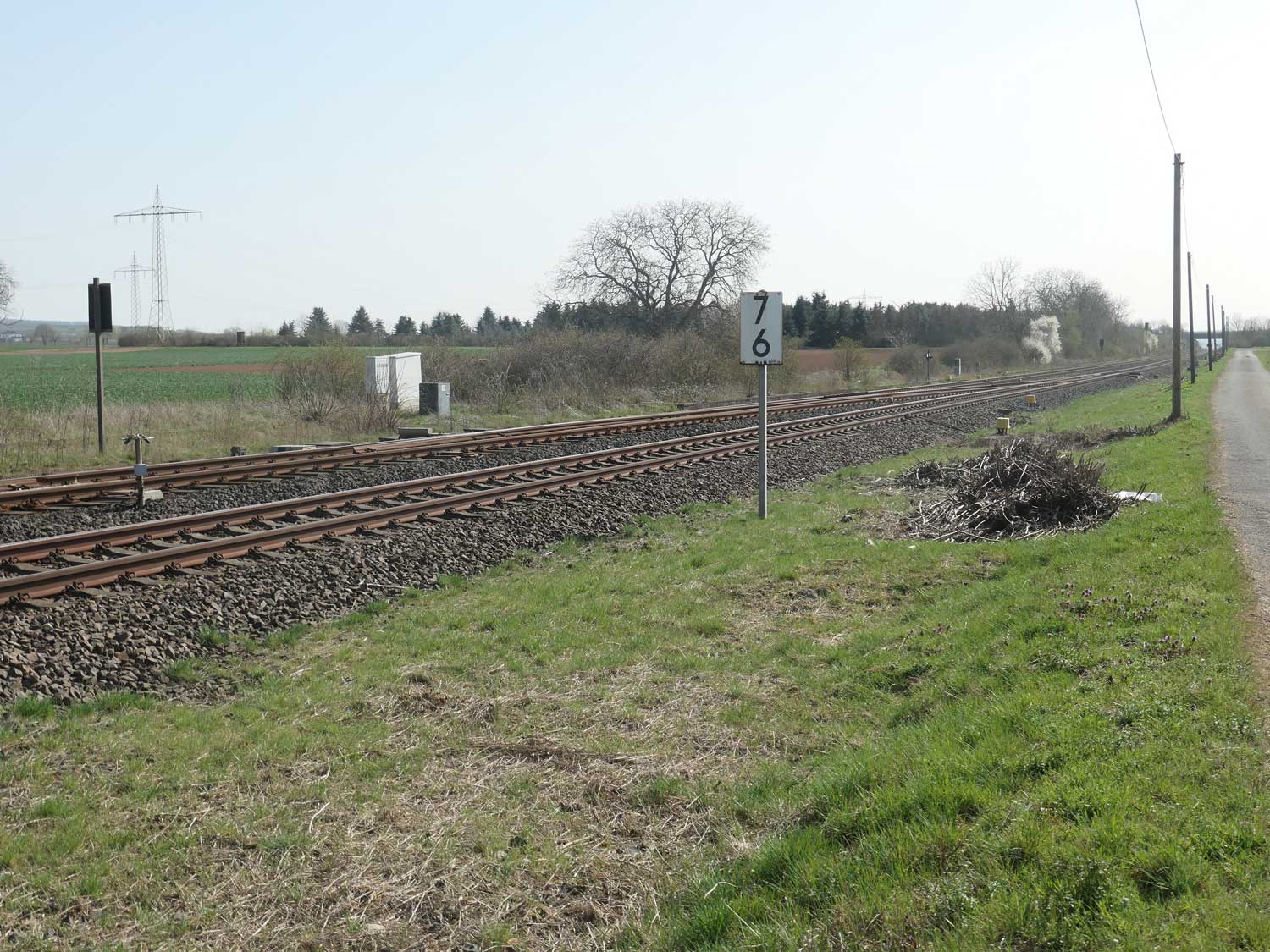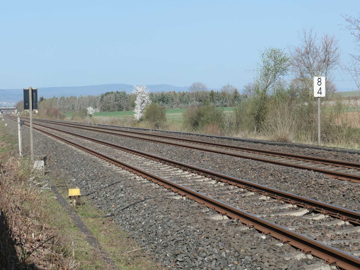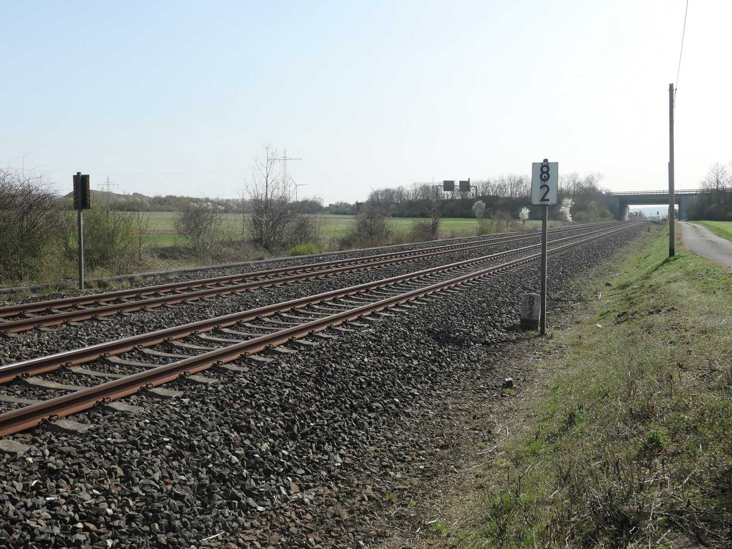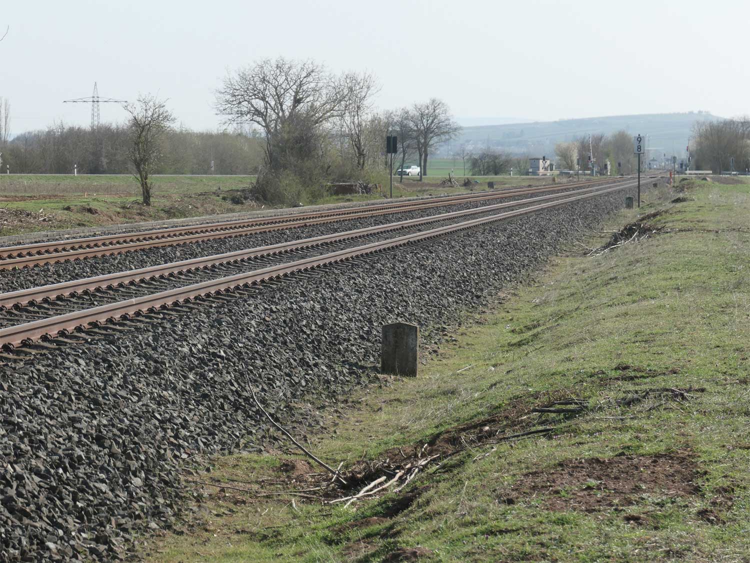 km 7,4 in Büdesheim-Dromersheim (heute: Abzw Büdesheim-Dromersheim) - Blick Richtung Gau-Algesheim