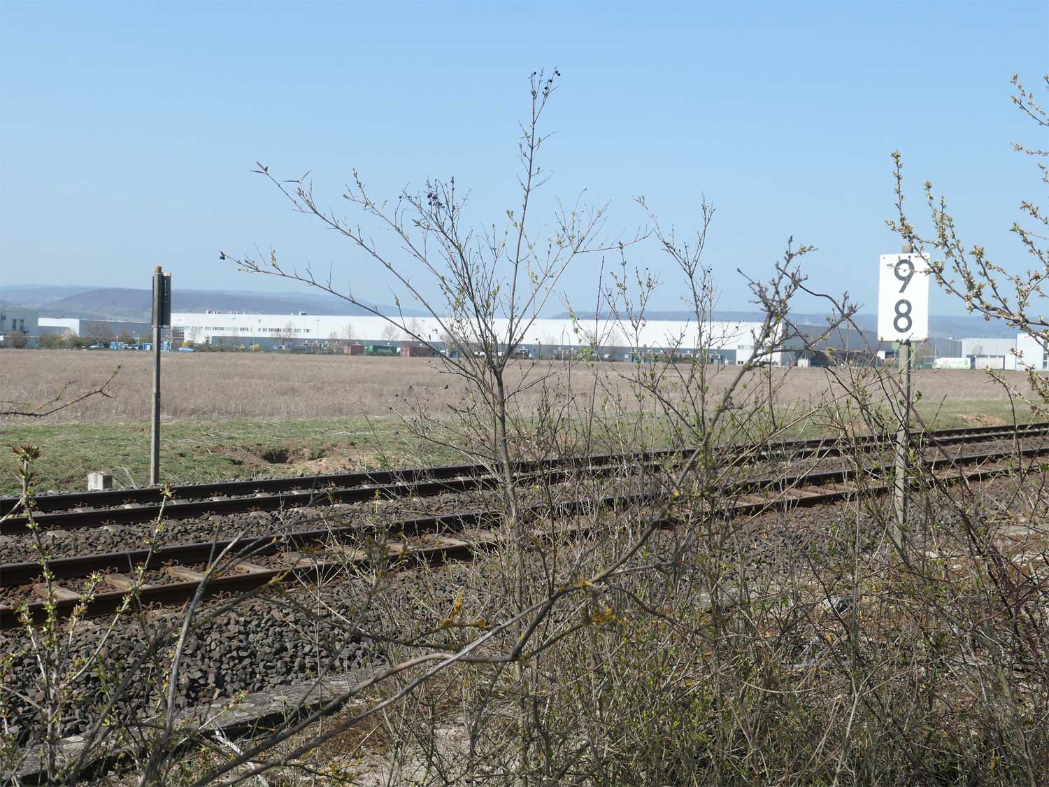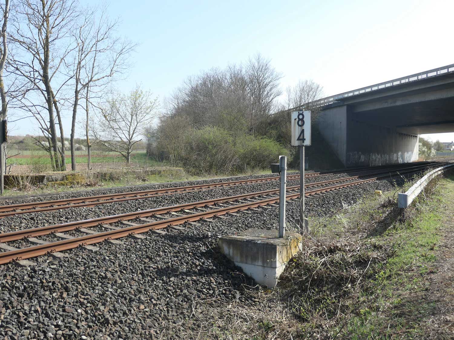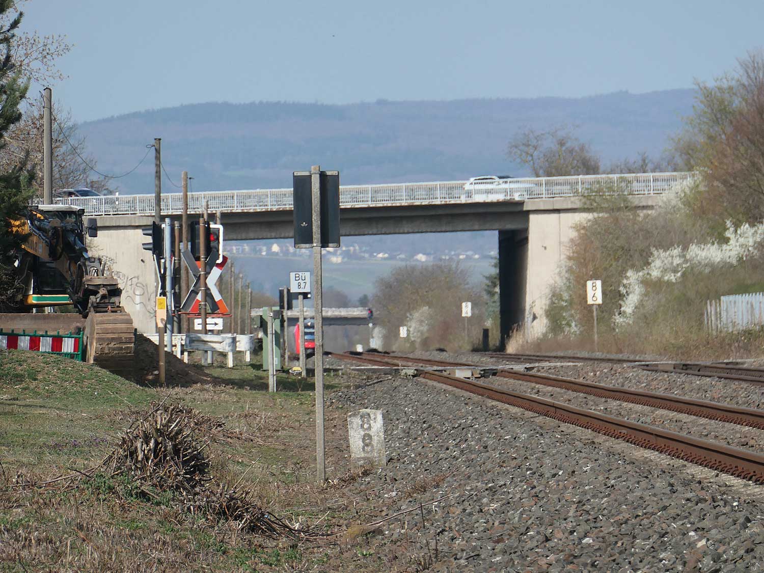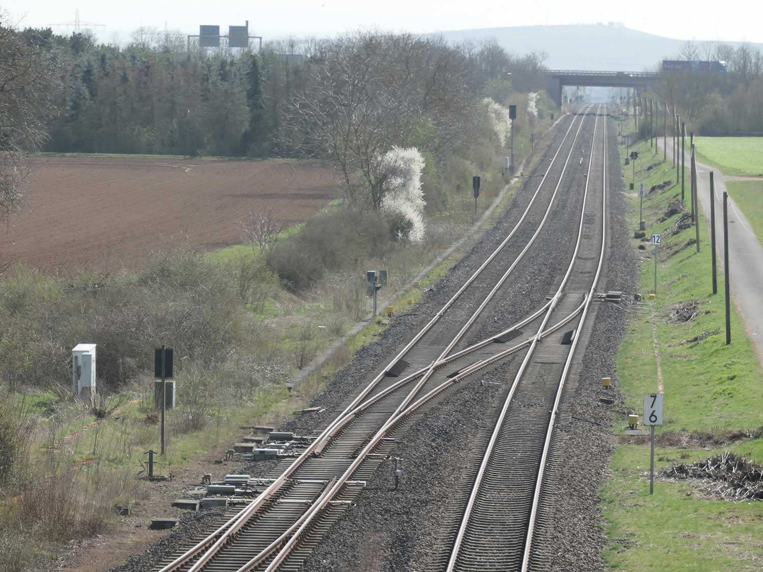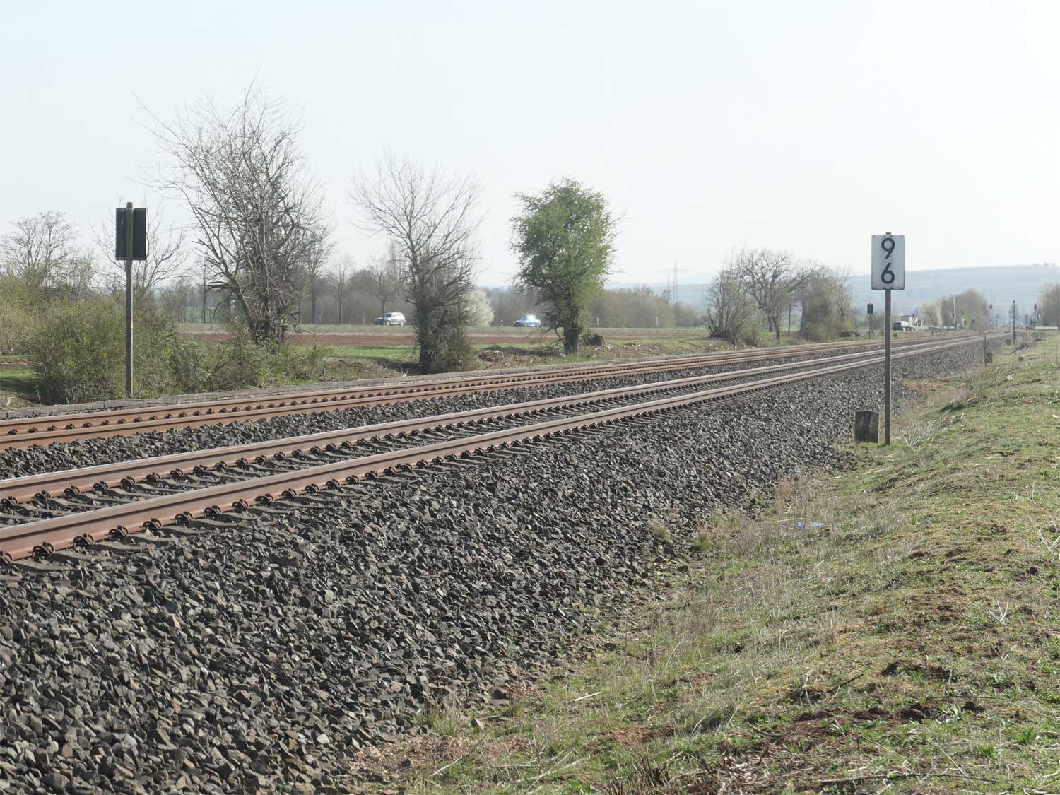 km 7,4 in Büdesheim-Dromersheim (heute: Abzw Büdesheim-Dromersheim) - Blick Richtung Gau-Algesheim