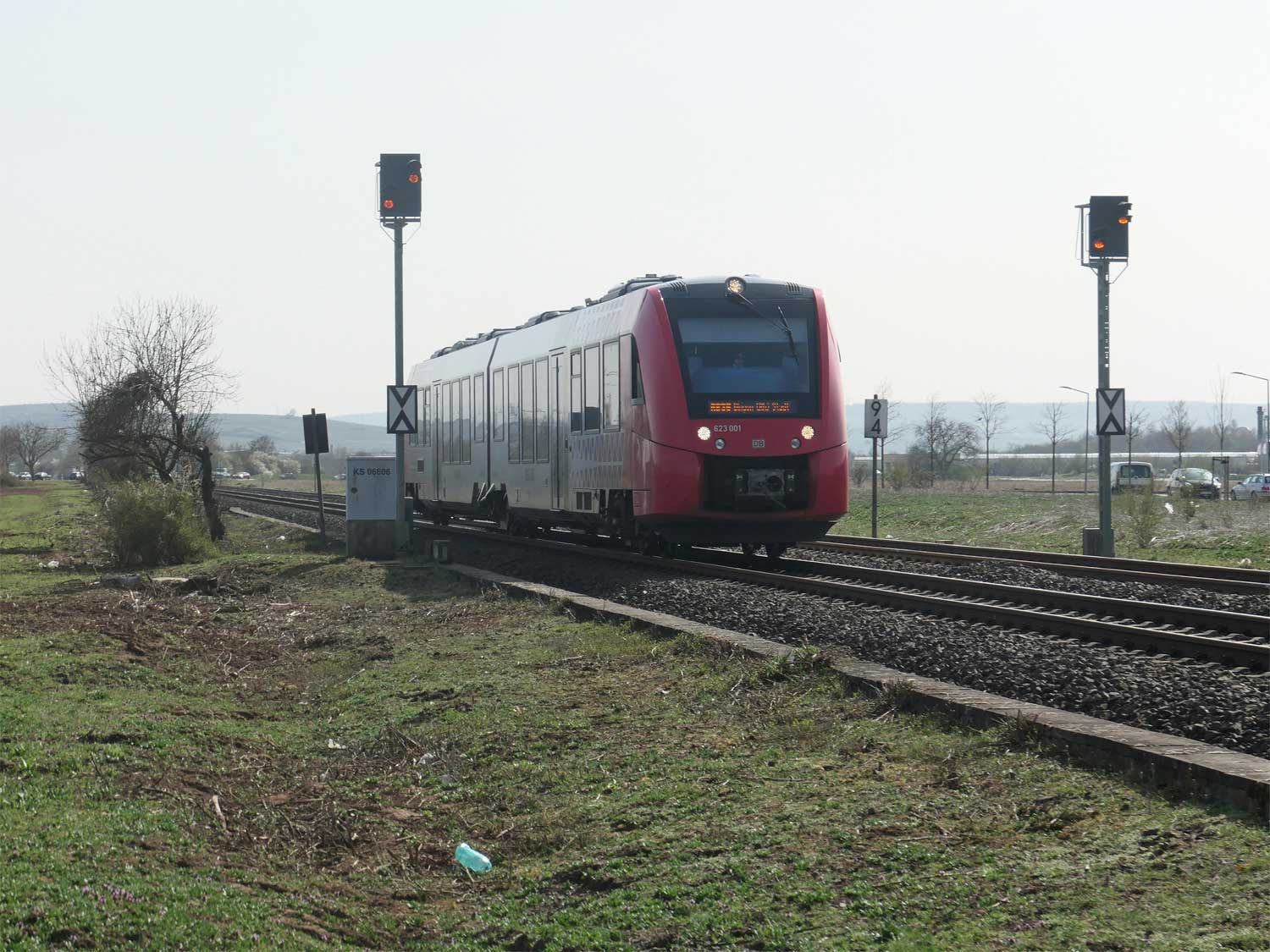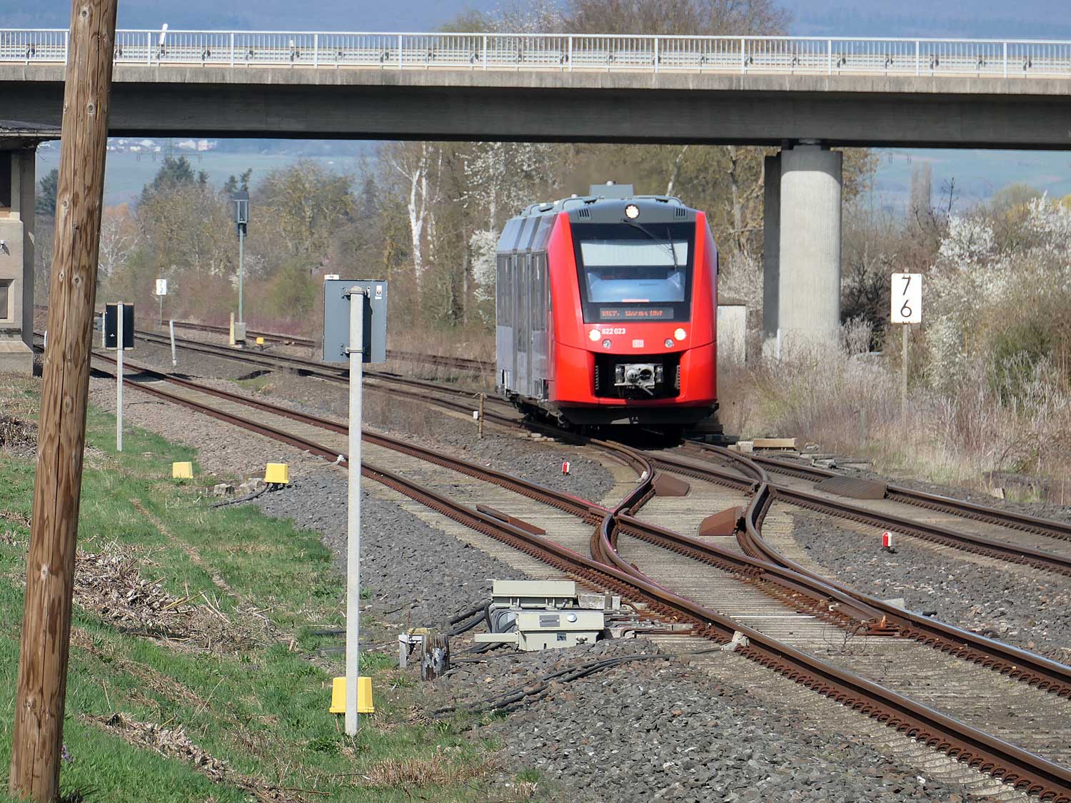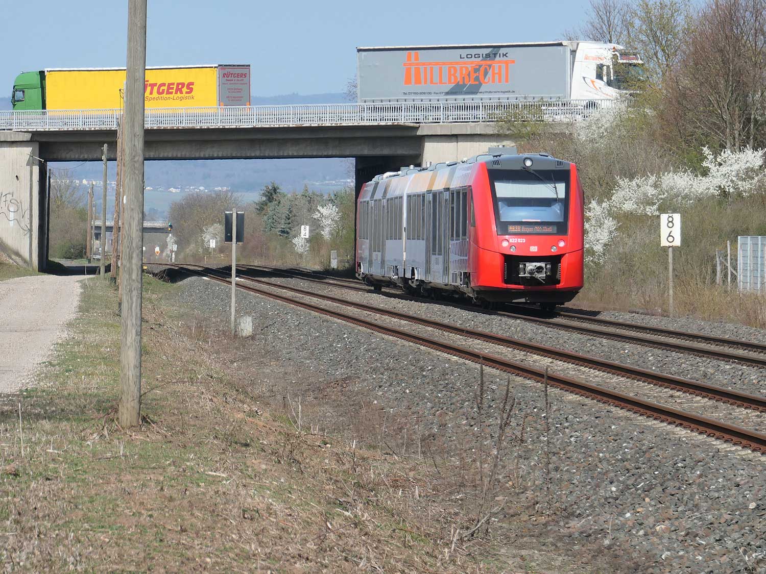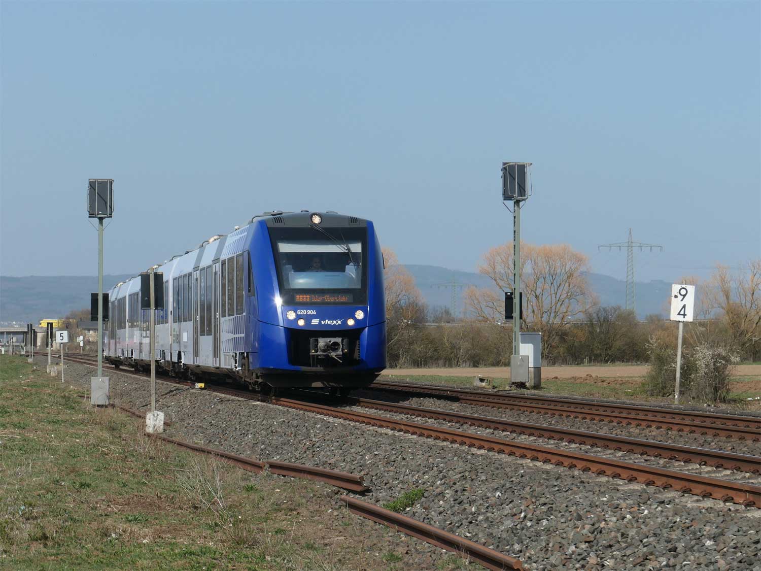 Abz Büdesheim-Dromersheim 7,33 km 56,57 der Strecke Worms Hbf 0,0 - Monsheim 11,55 - Alzey 30,03 - Bingen (Rhein) 63,38