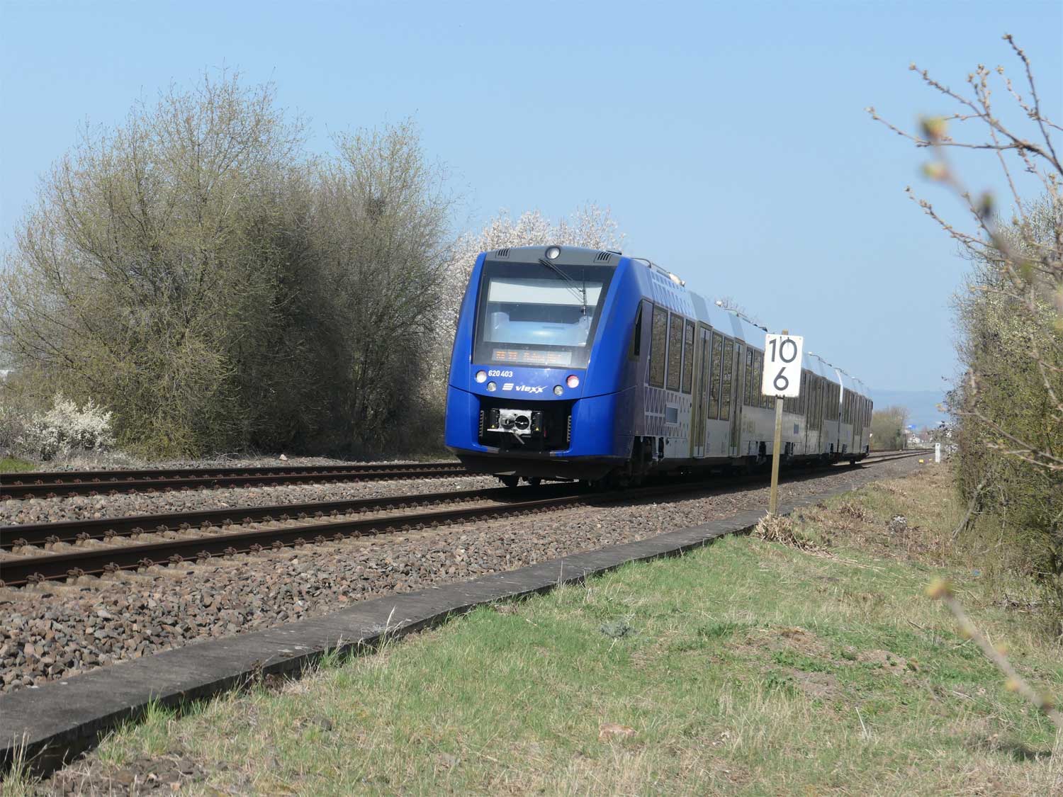 7,60 km 56,59 der Strecke Worms Hbf 0,0 - Monsheim 11,55 - Alzey 30,03 - Bingen (Rhein) Stadt 63,29 (3560/3569)