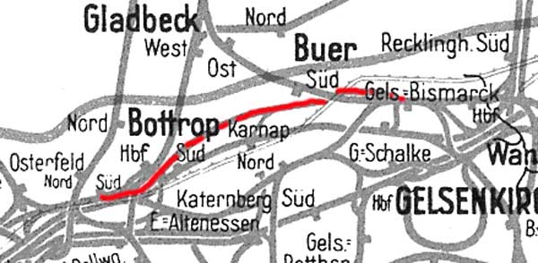 Gelsenkirchen-Bismarck -0,32 - Abzw Hugo 3,11 - Bottrop Hbf 12,78 - Oberhausen-Osterfeld Süd 17,29