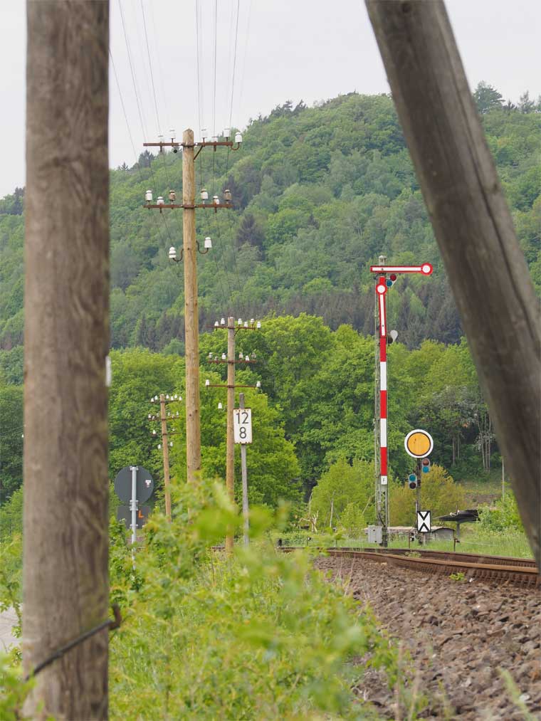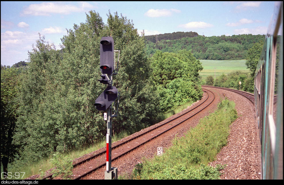 km 45,2 mit dem Einfahrsignal von Bad Kissingen - rechtes Gleis gehört zur Strecke Ebenhausen (Mainfranken) 0,0 - Bad Kissingen 9,445