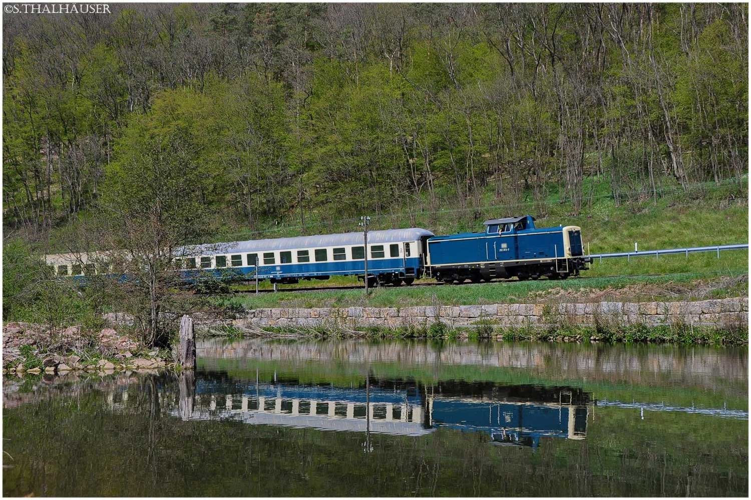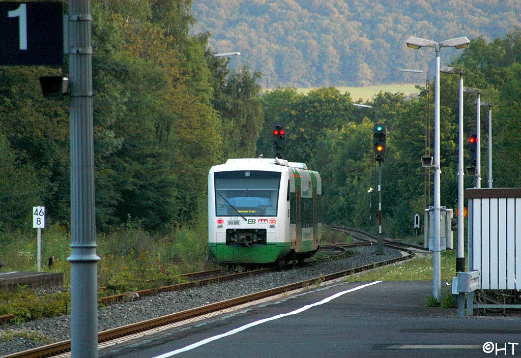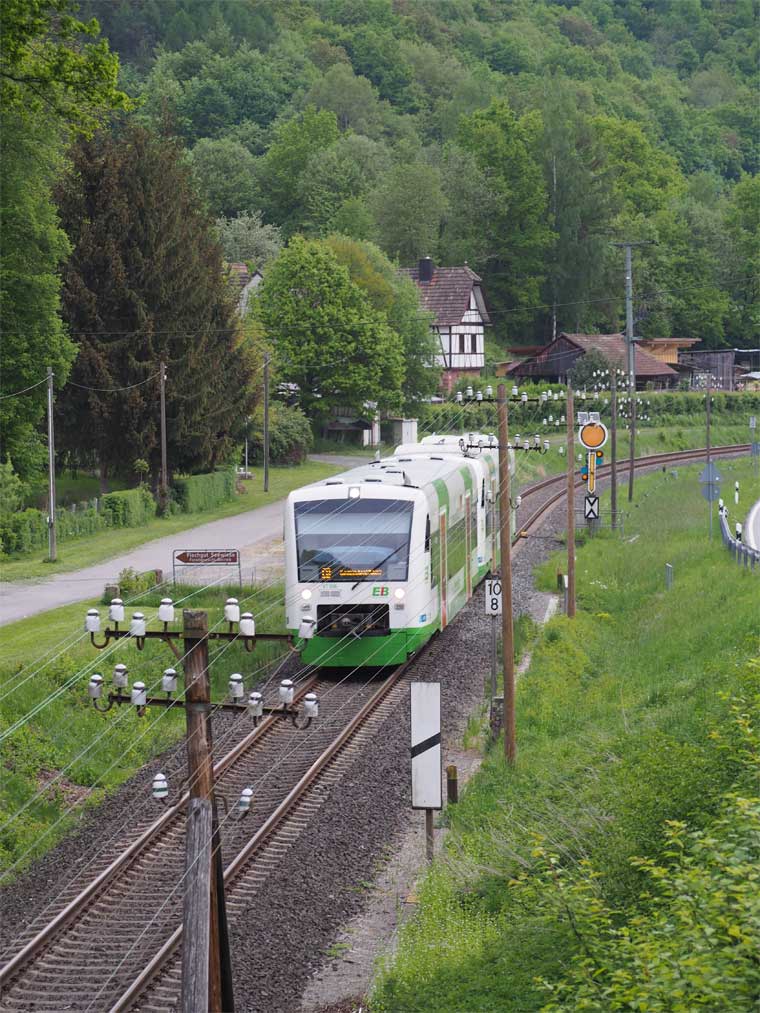 Triebwagen der EB (STB) am km 14,2 zwischen Gräfendorf und Michelaubrück