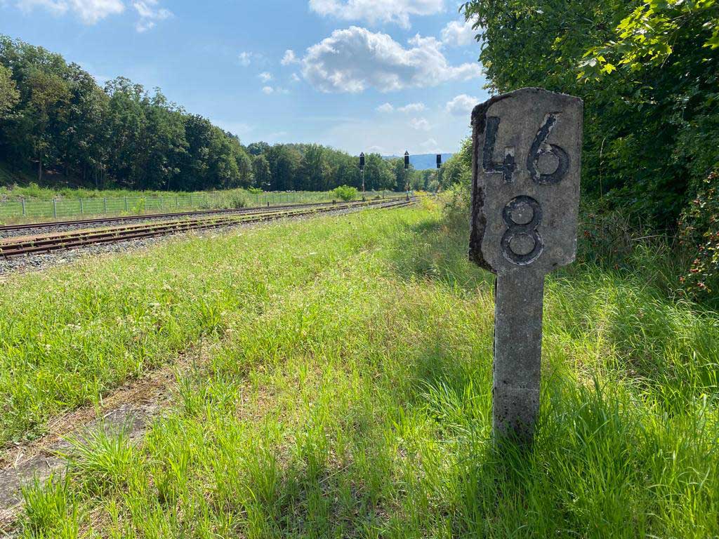 km 25,4 (Tafel und Stein) zwischen Diebach und Hammelburg